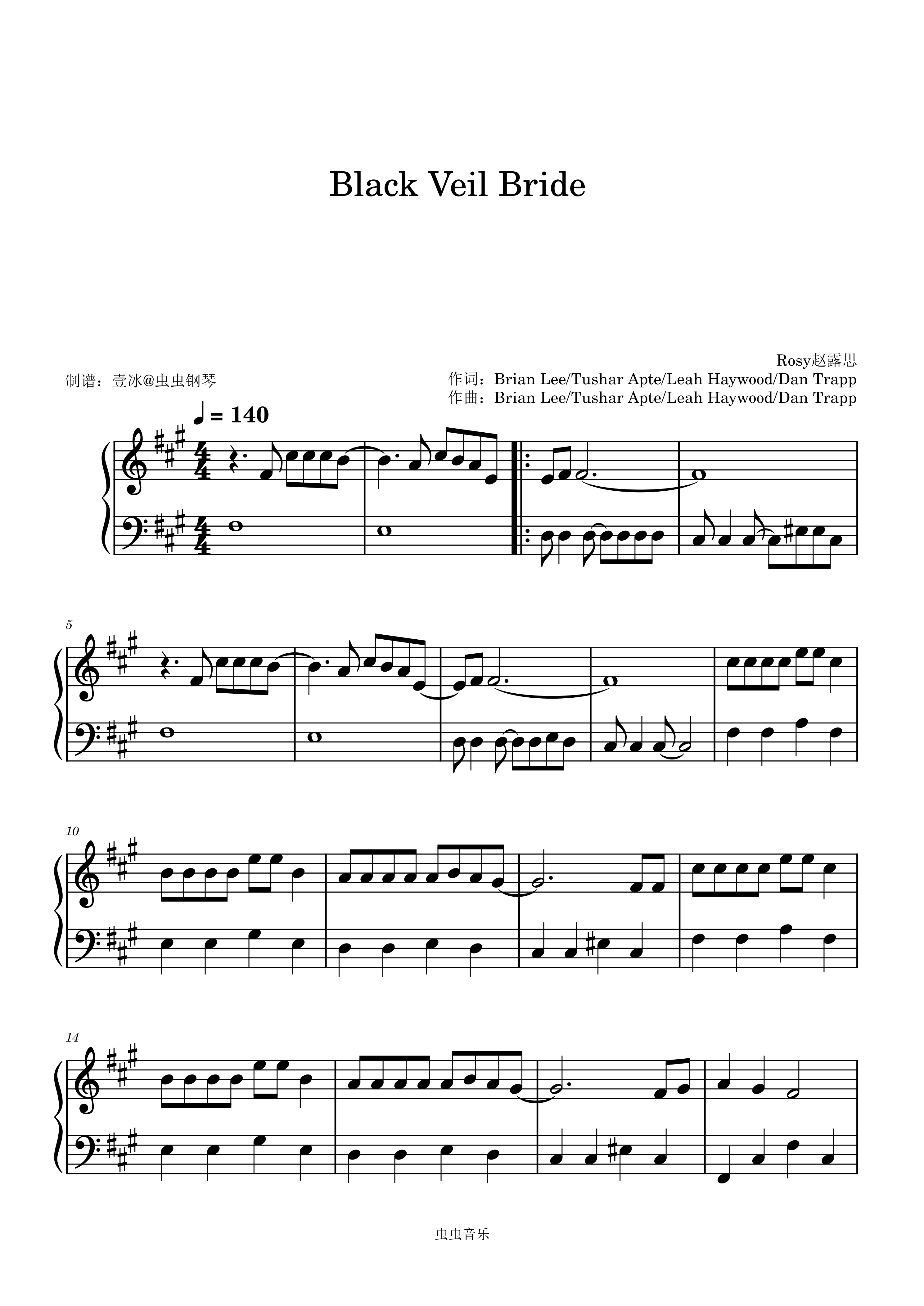 钢琴谱:Black Veil Bride - Rosy赵露思 原调