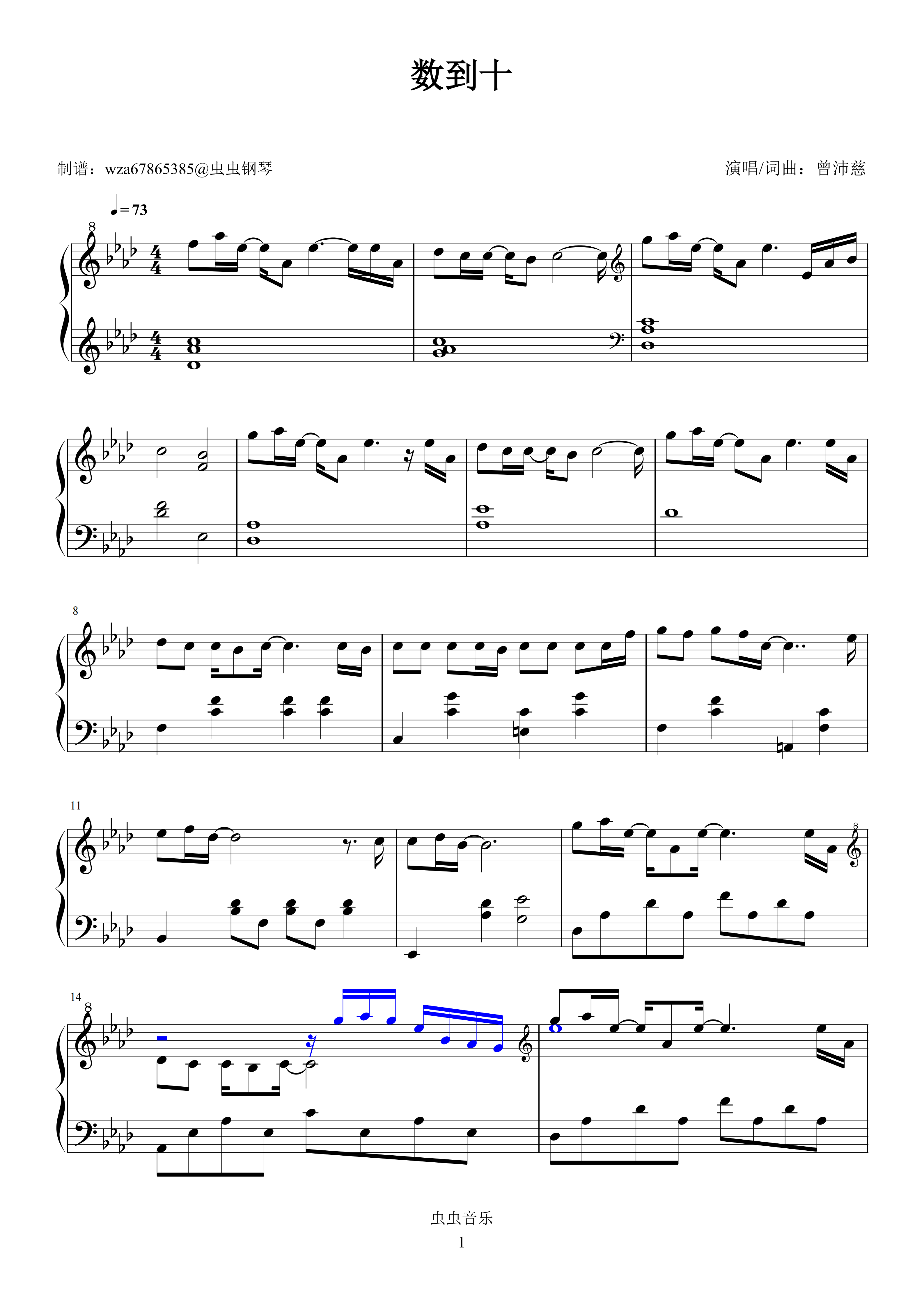• 十年钢琴简谱 Ab调 数字双手 林夕