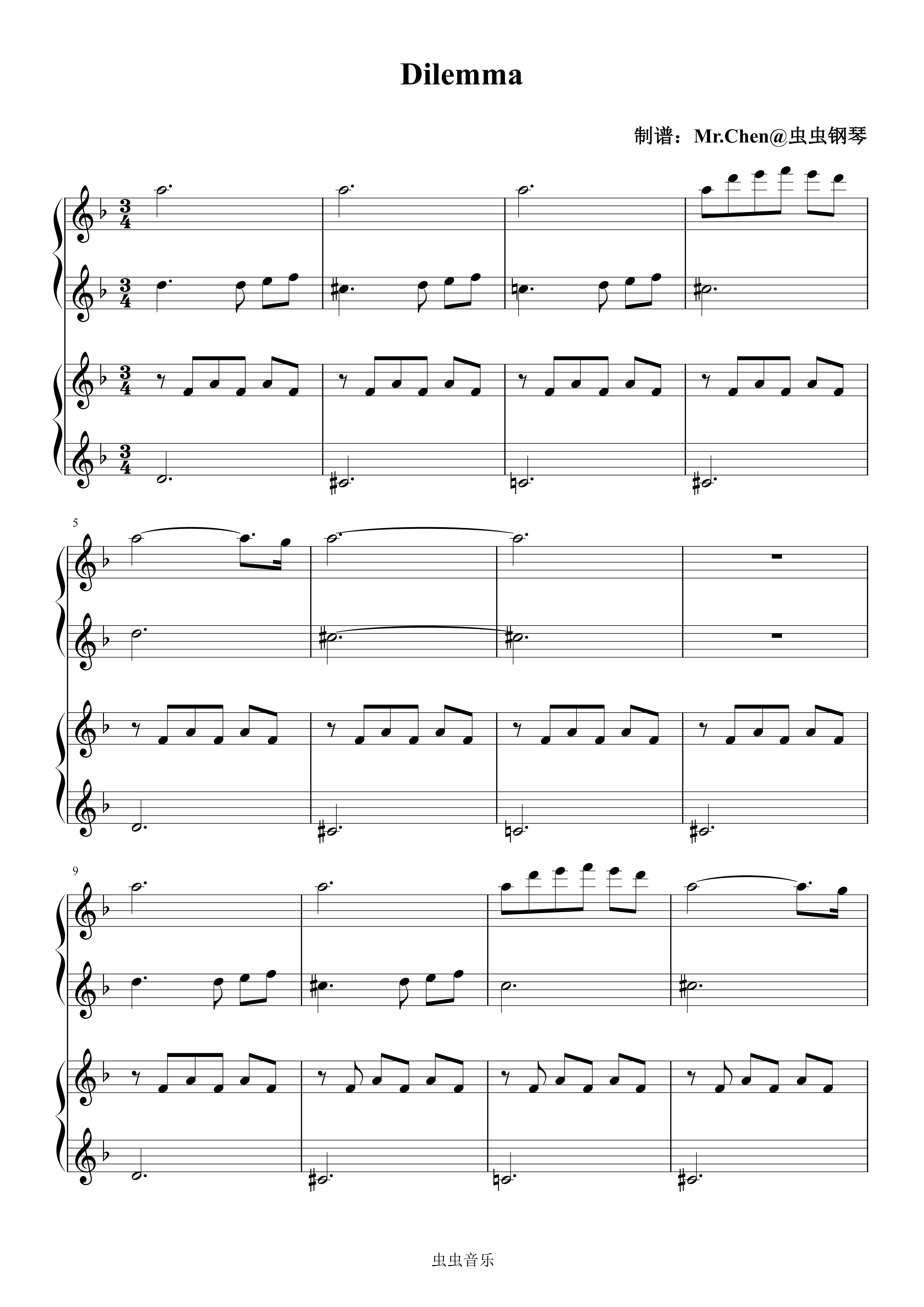 钢琴谱:Dilemma (四手联弹) - 时空储蓄罐