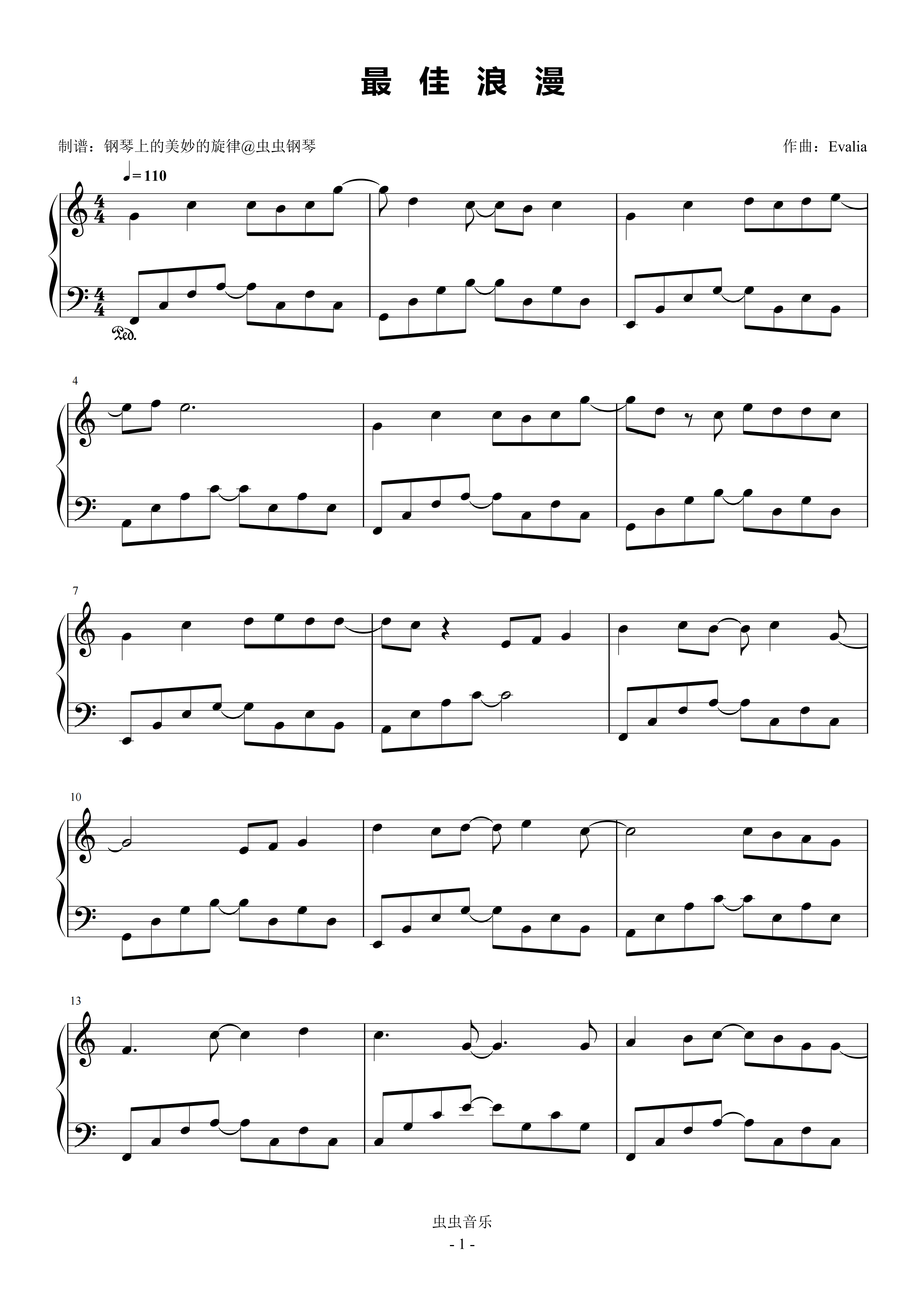 钢琴谱:最佳浪漫 C调简易版 188男团&家主团