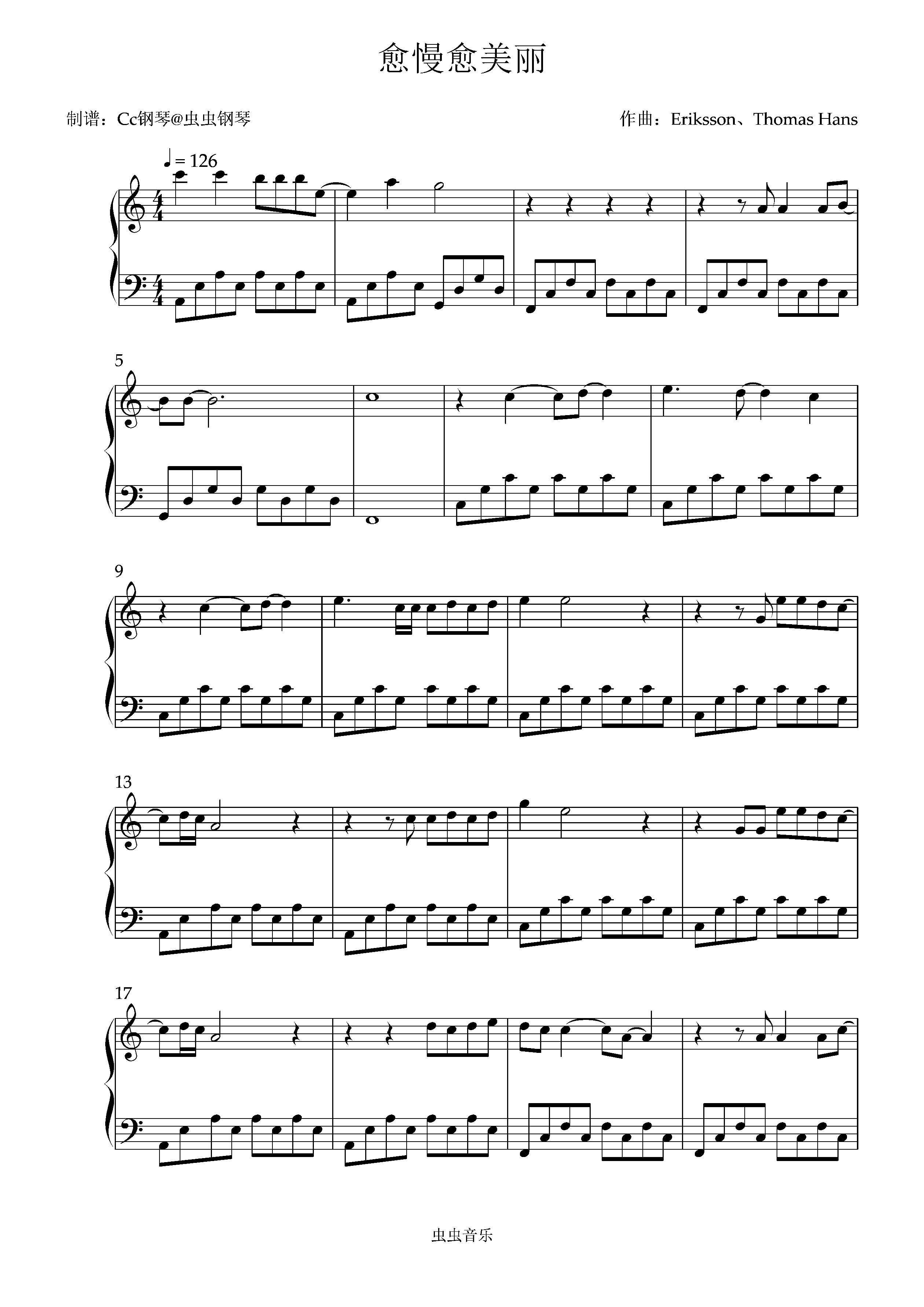 钢琴谱:愈慢愈美丽 C调 好听易上手