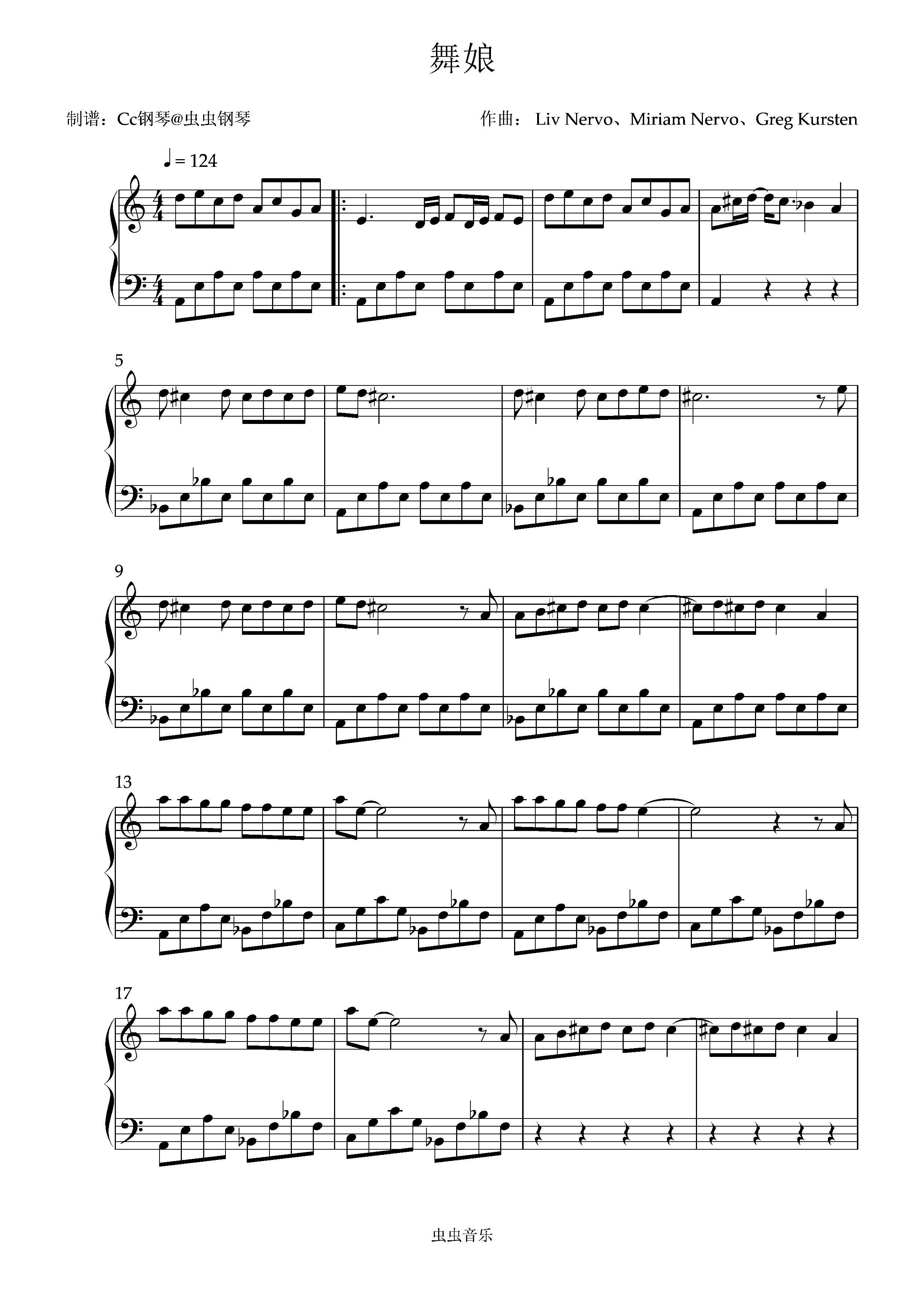 • 舞娘钢琴简谱 E调 数字双手 陈镇川