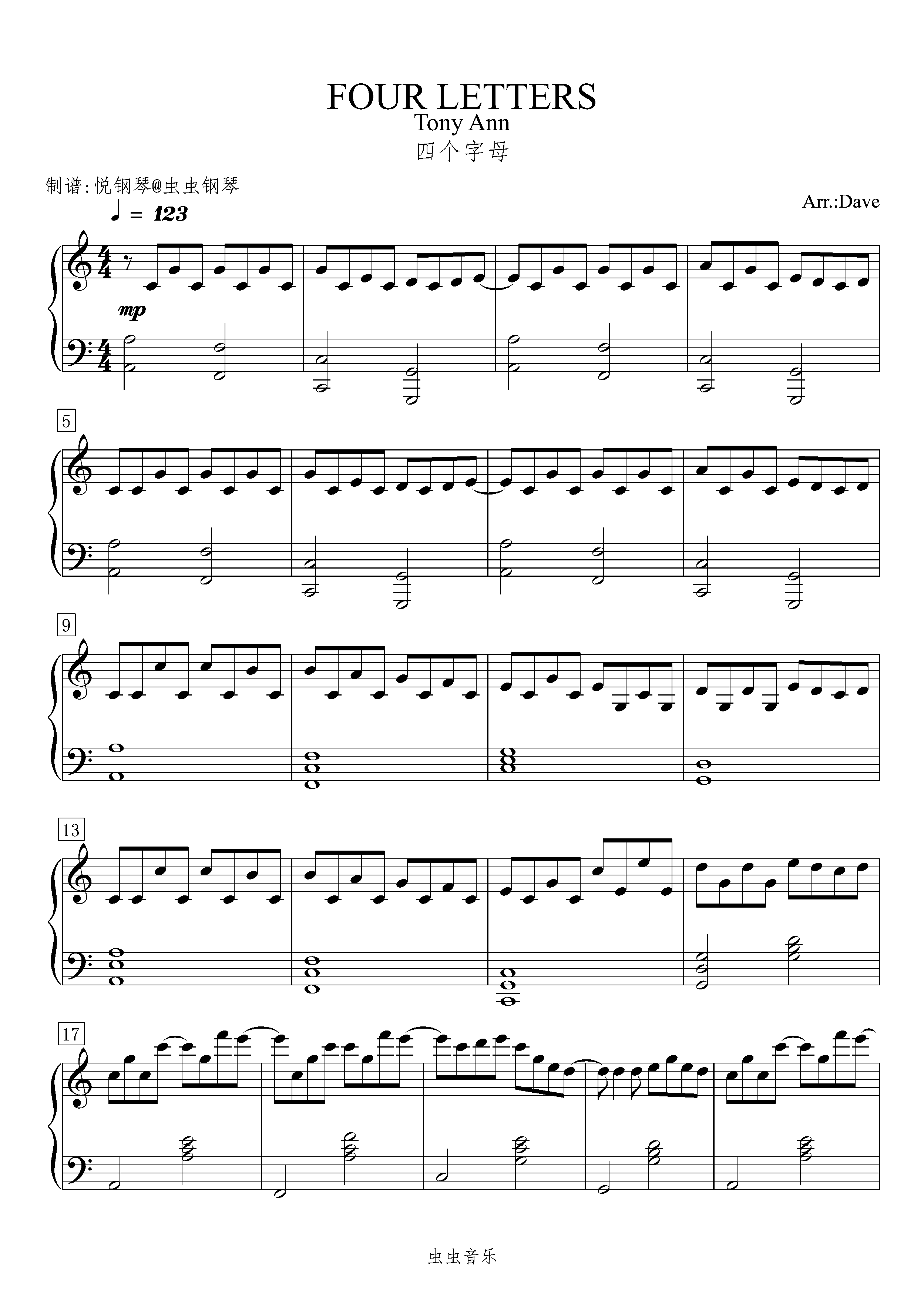 钢琴谱:四个字母/FOUR LETTERS 【抒情】