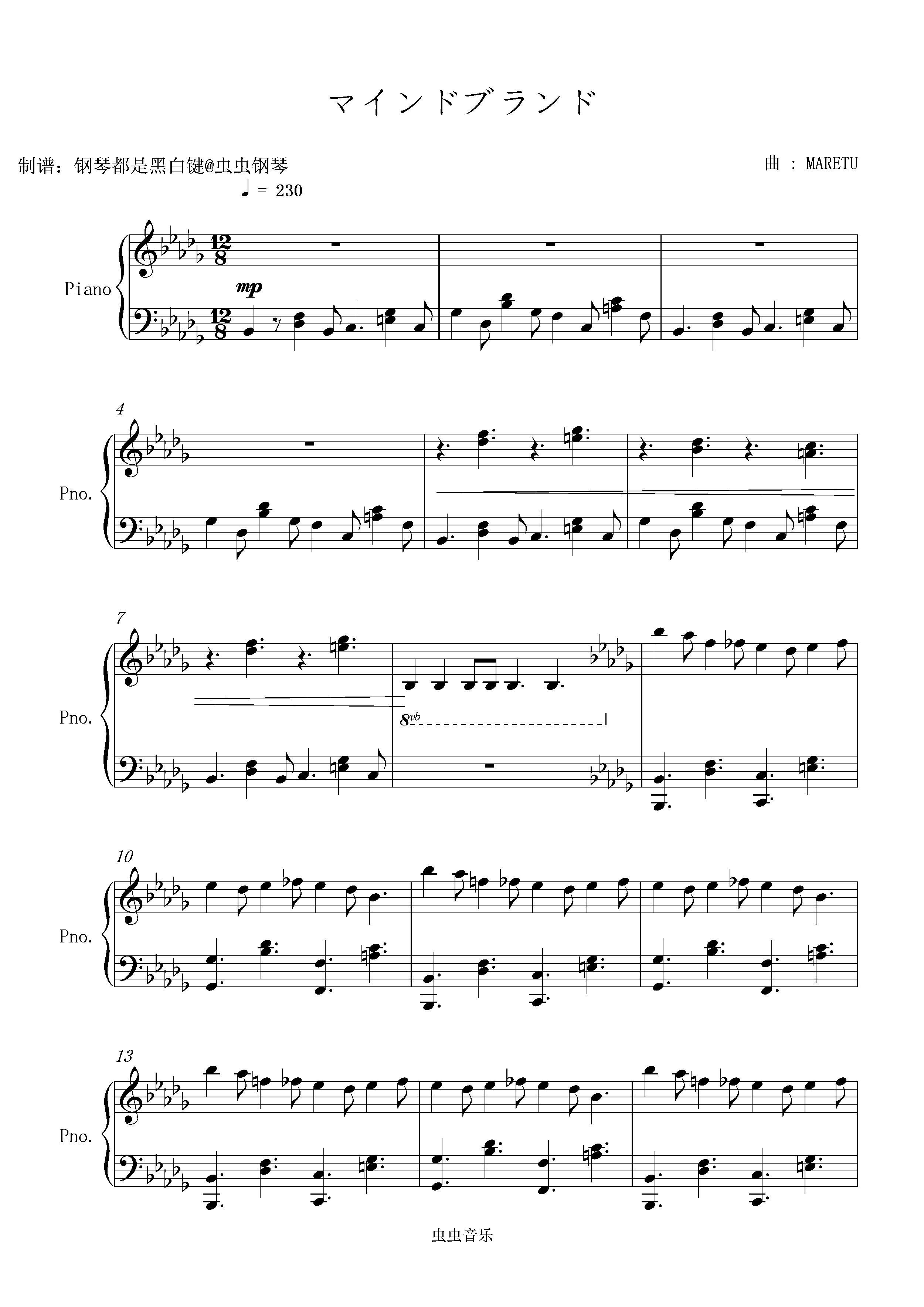 • メインテーマ ~Baby Blue Sky~钢琴简谱 Bb调 数字双手