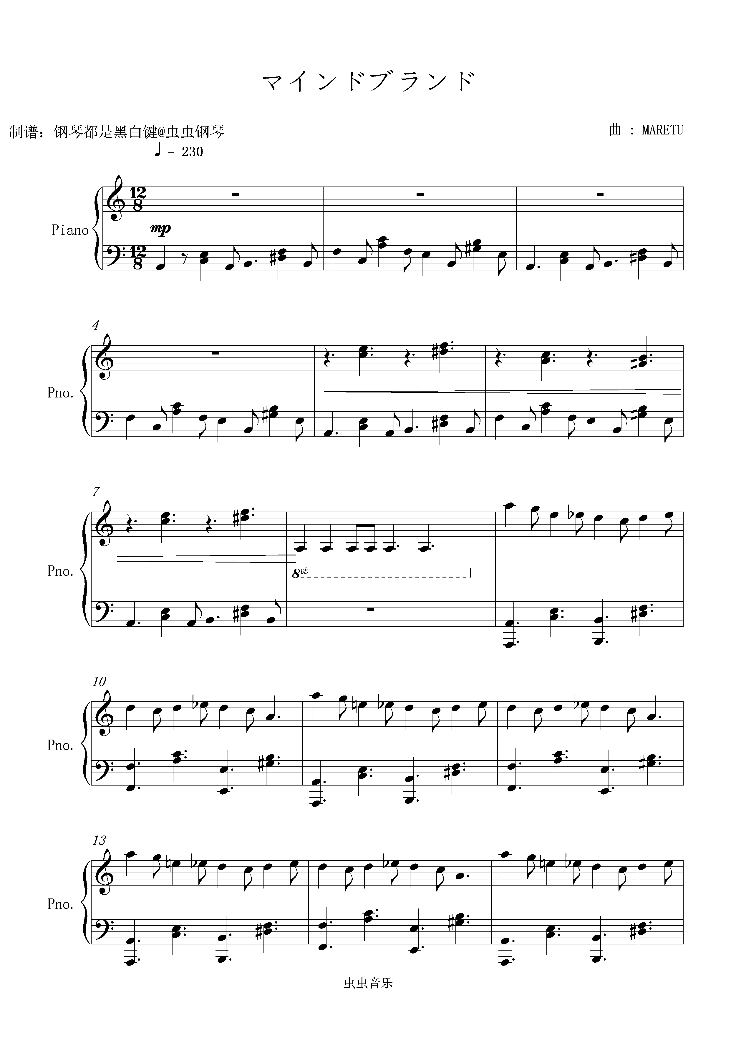 钢琴谱:【初音ミク】マインドブランド(C调演奏爵士感)