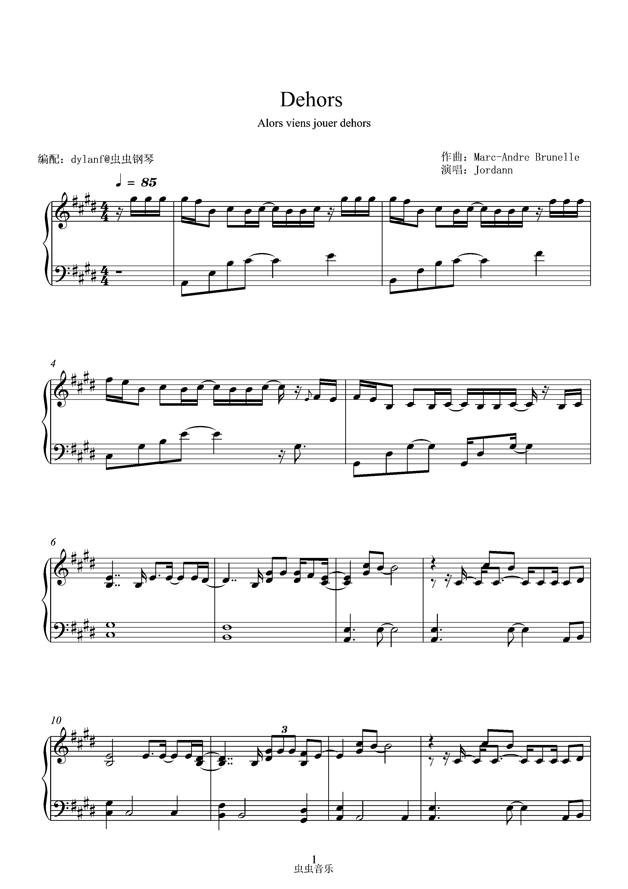 钢琴谱:Dehors 温柔|还原|好弹 钢琴版 曾舜晞 JORDANN