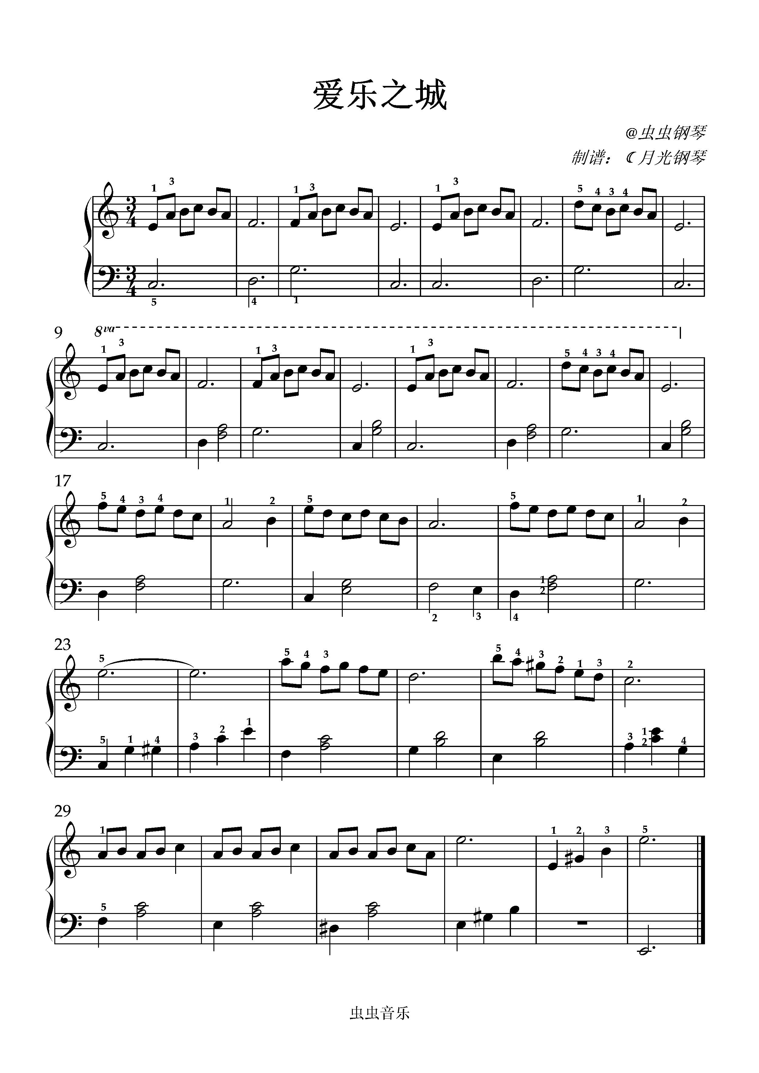 • 孤城钢琴简谱 C调 数字双手 炎鹤