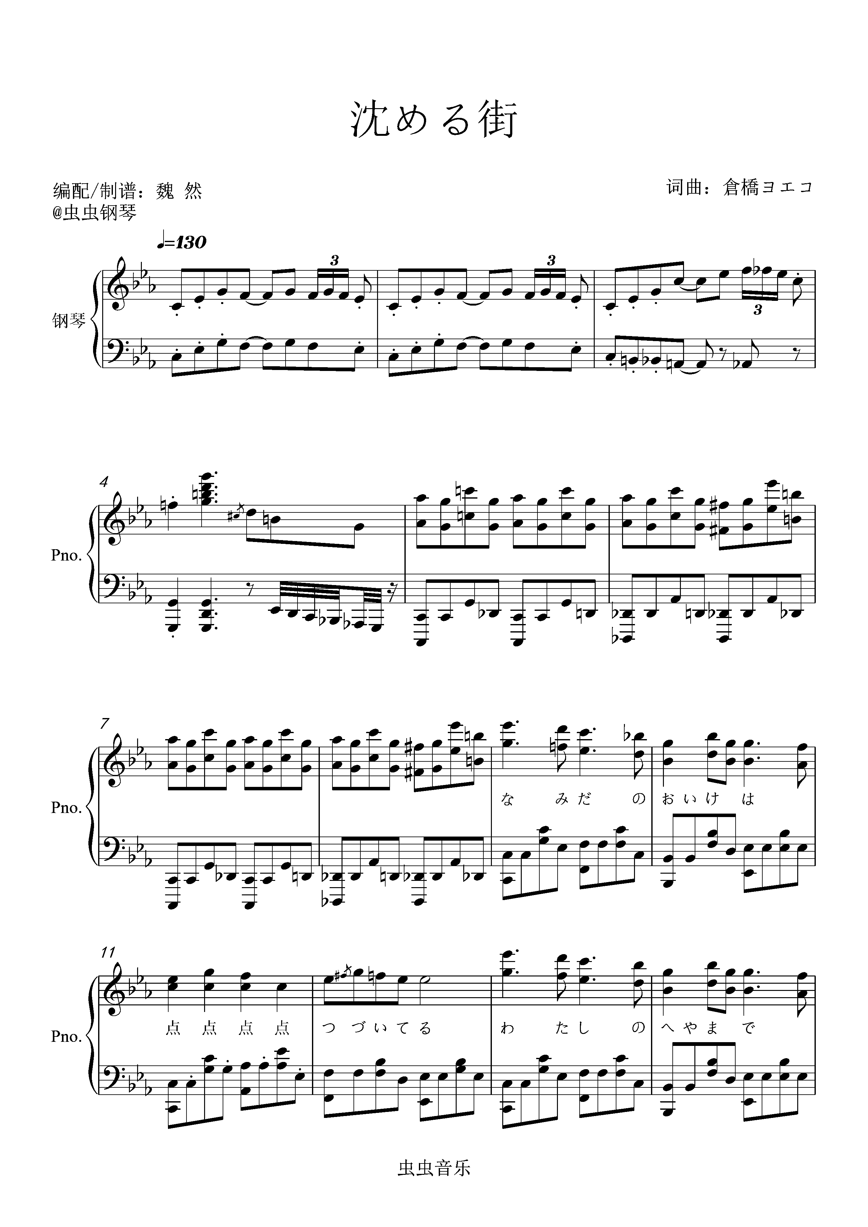 钢琴谱:沈める街(高燃钢琴)——『忧伤歌声』