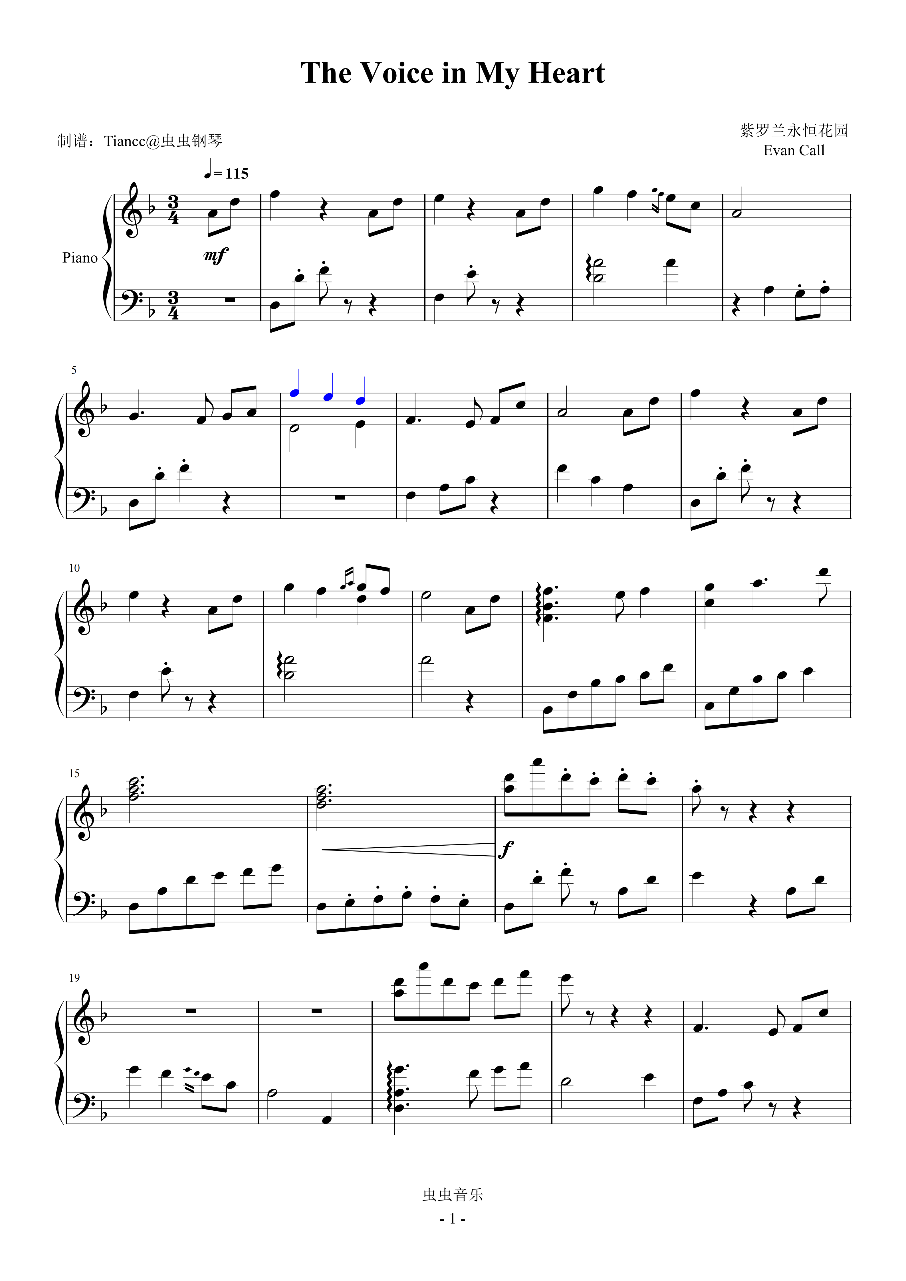 钢琴谱:《The Voice in My Heart》紫罗兰的永恒花园