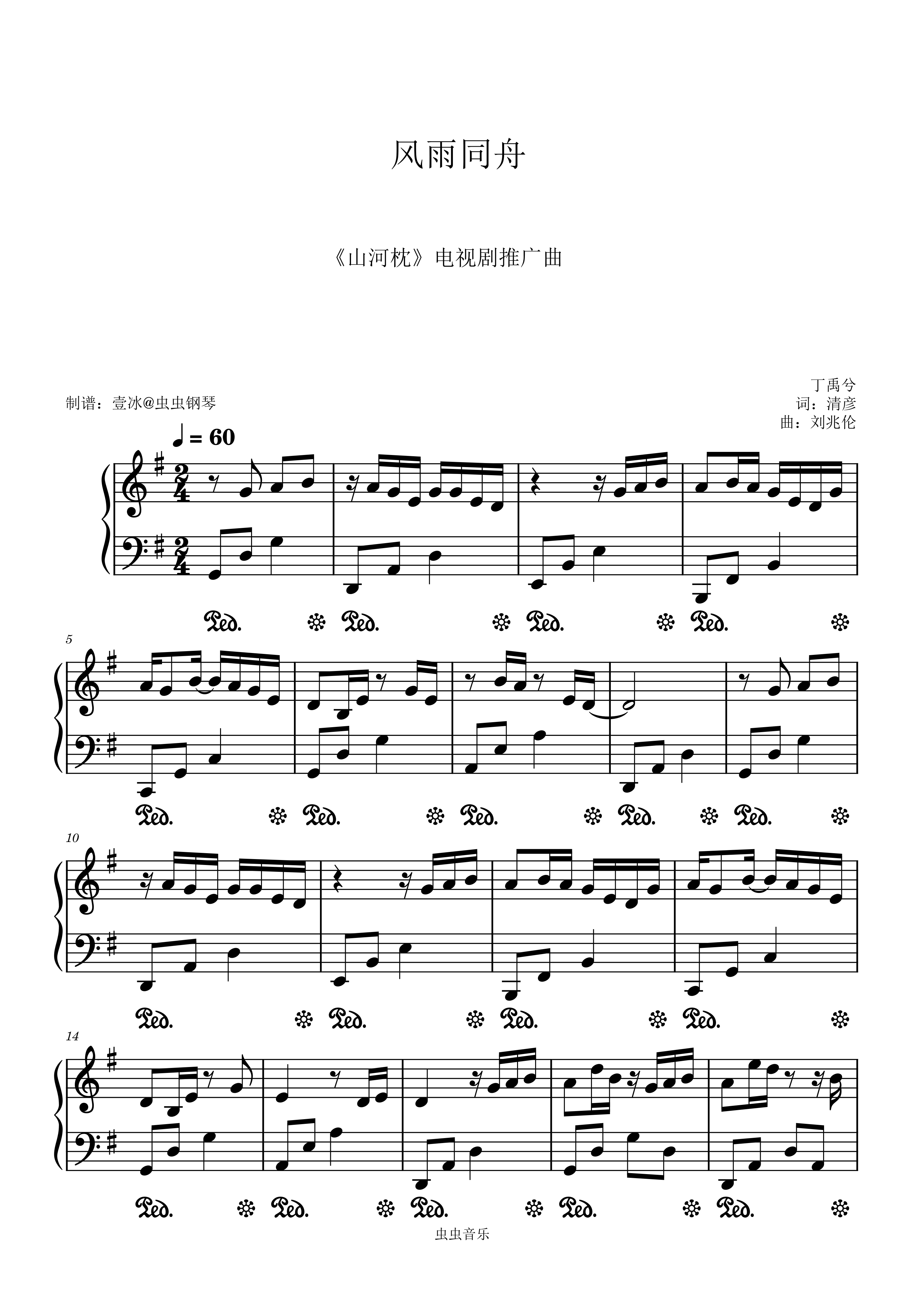 钢琴谱:风雪同舟 (《山河枕》电视剧推广曲) - 原调