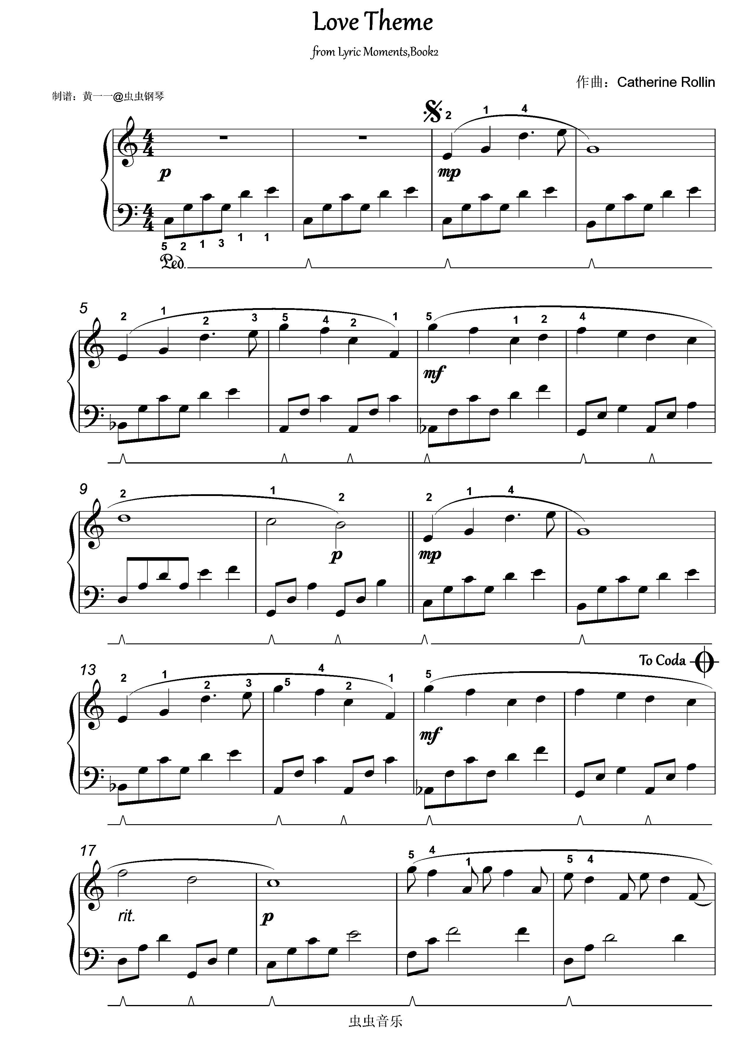 钢琴谱:Love Theme (爱的主题)选自《抒情时刻》-C调