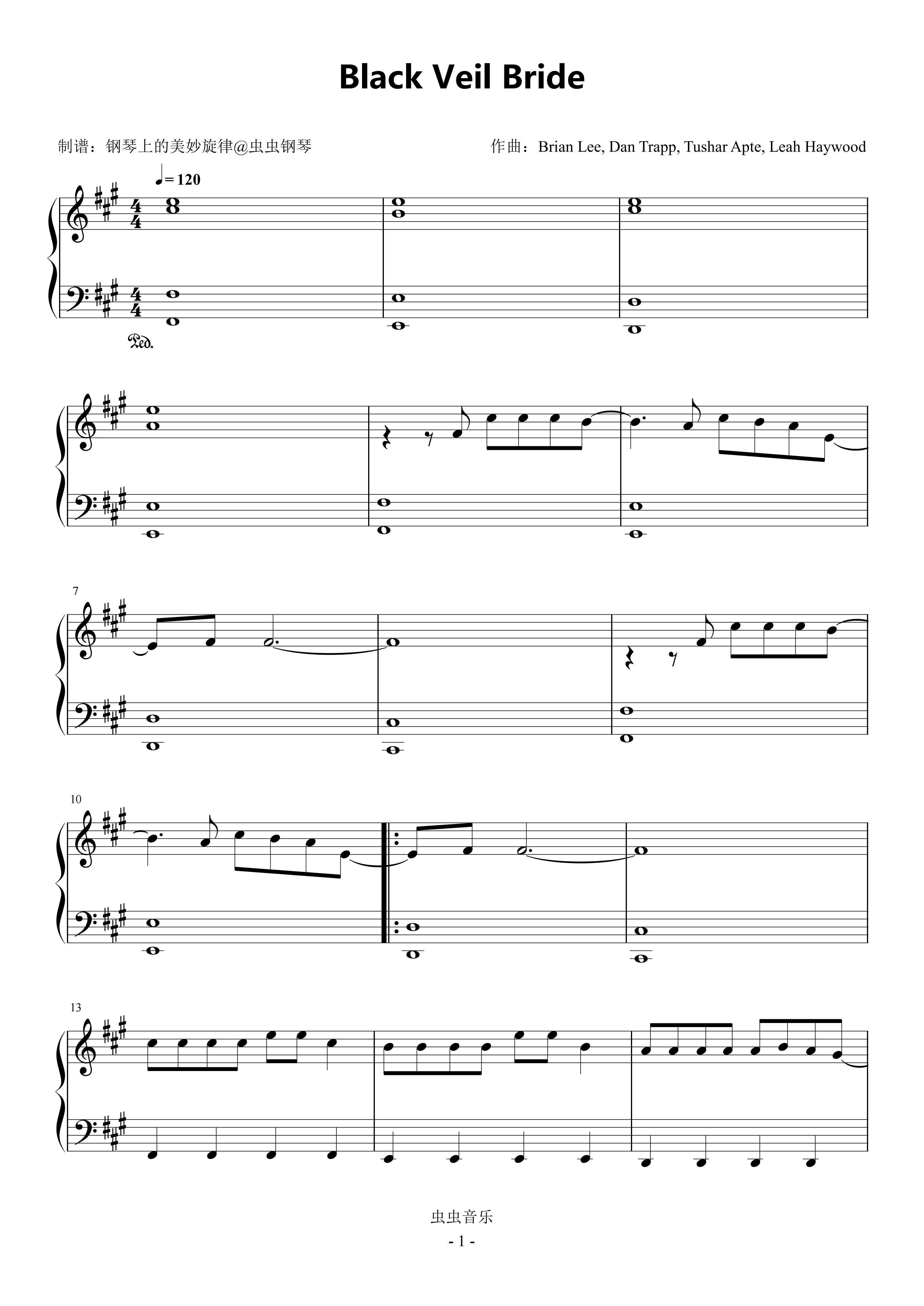 钢琴谱:Black Veil Bride 简易版 Rosy赵露思