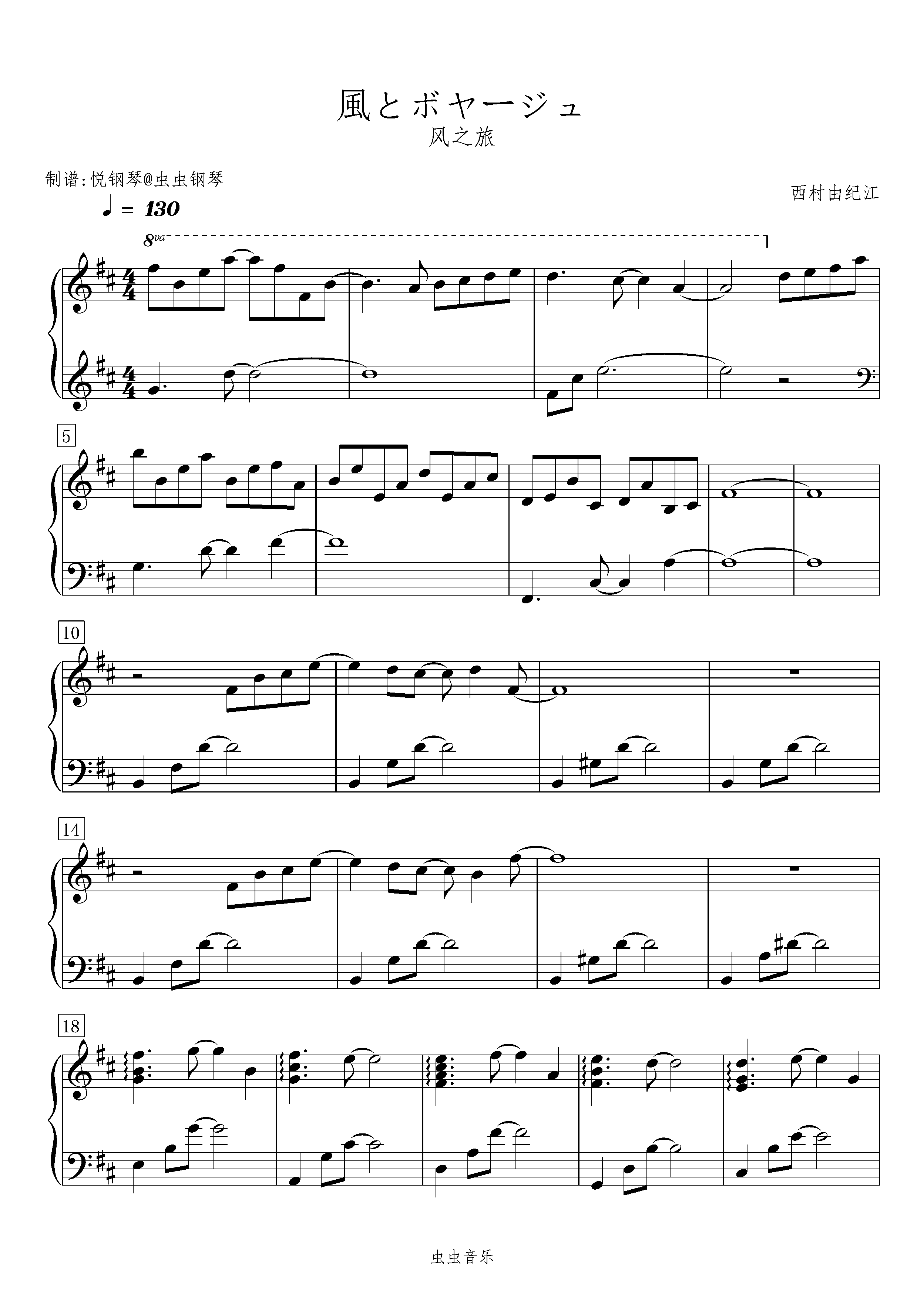 钢琴谱:风之旅/風とボヤージュ 【清新】