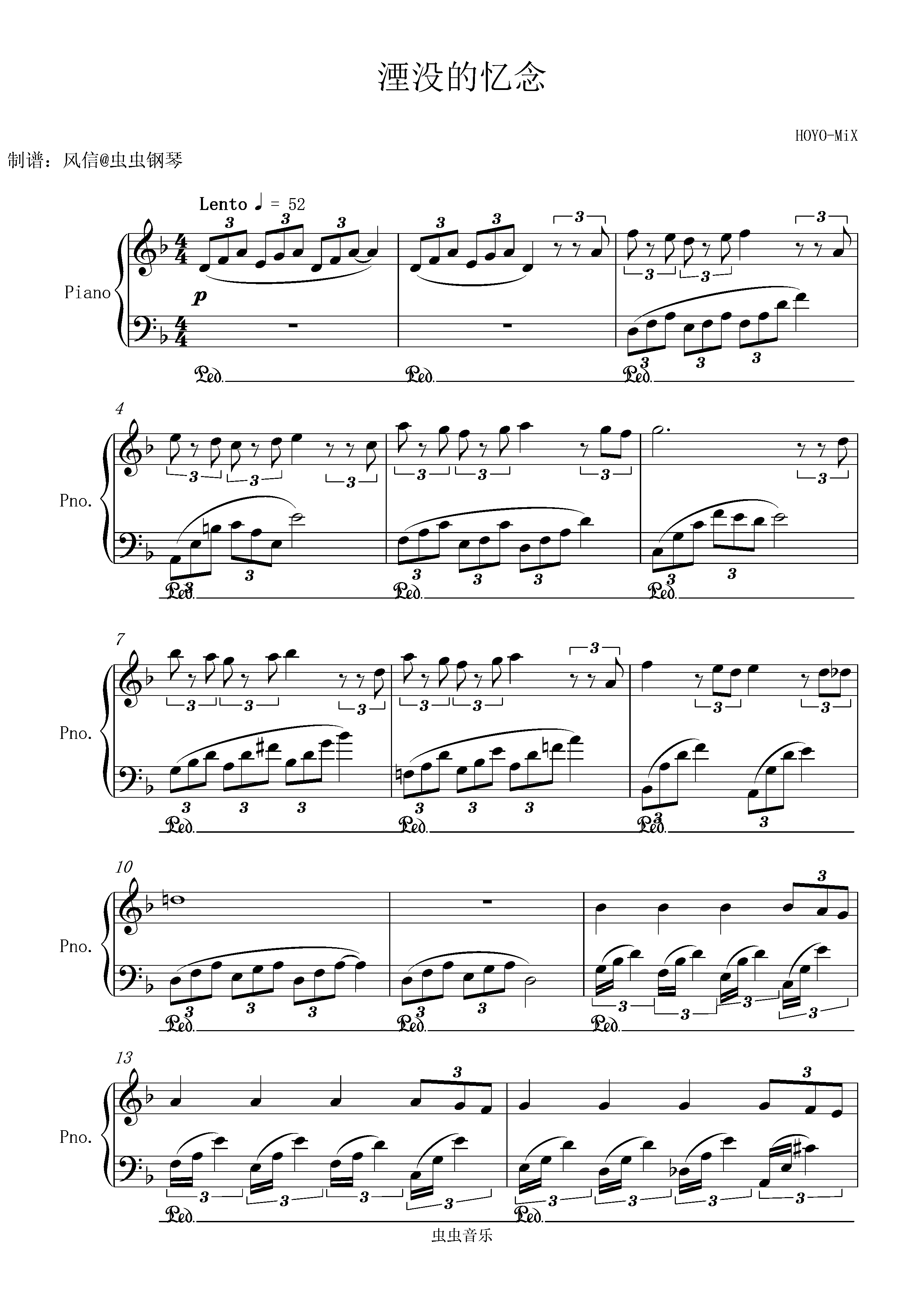 • 湮没的忆念钢琴简谱 F调 数字双手
