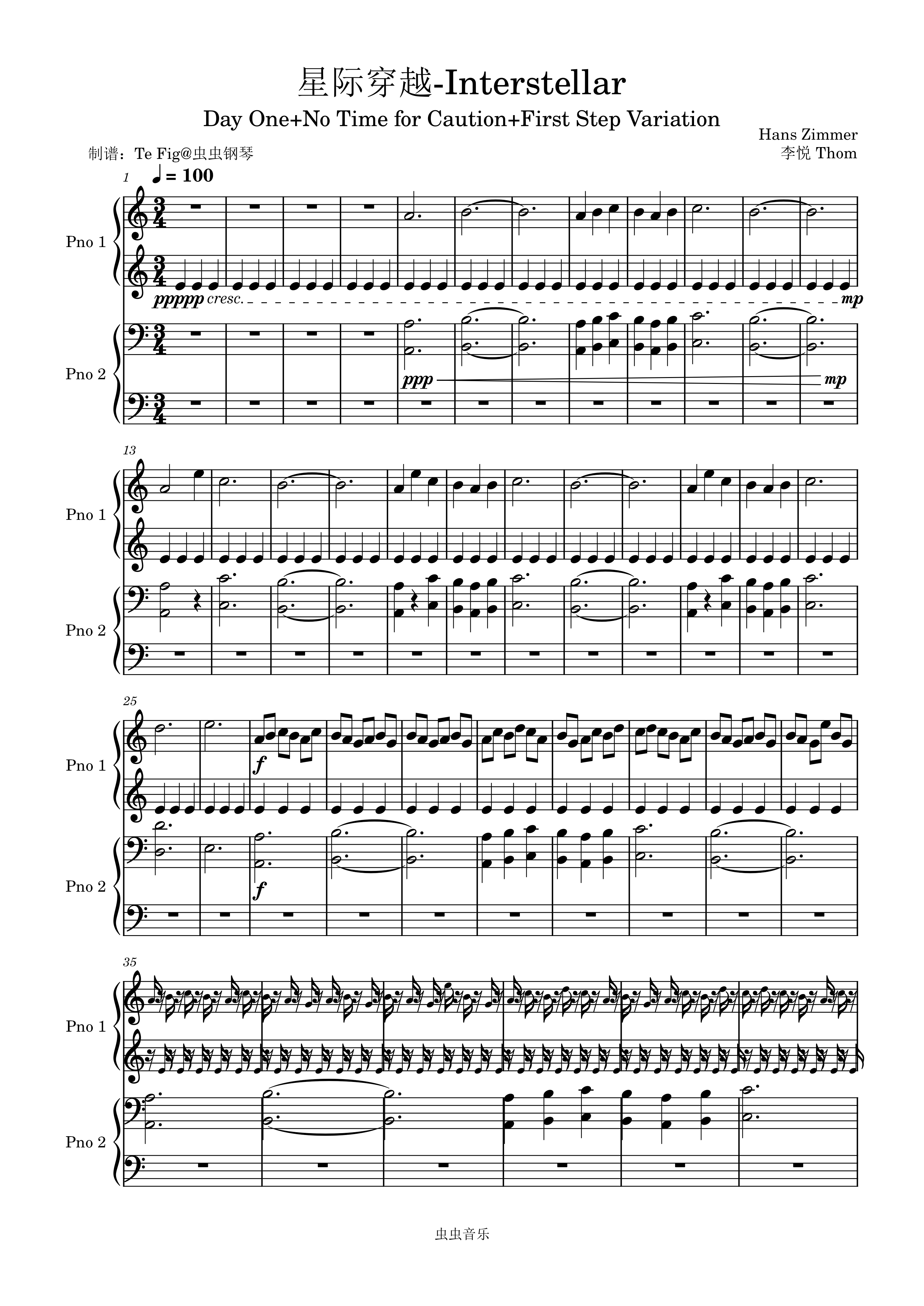 钢琴谱:星际穿越-四手联弹 Interstellar-Day One+No Time for Caution+First Step Variation