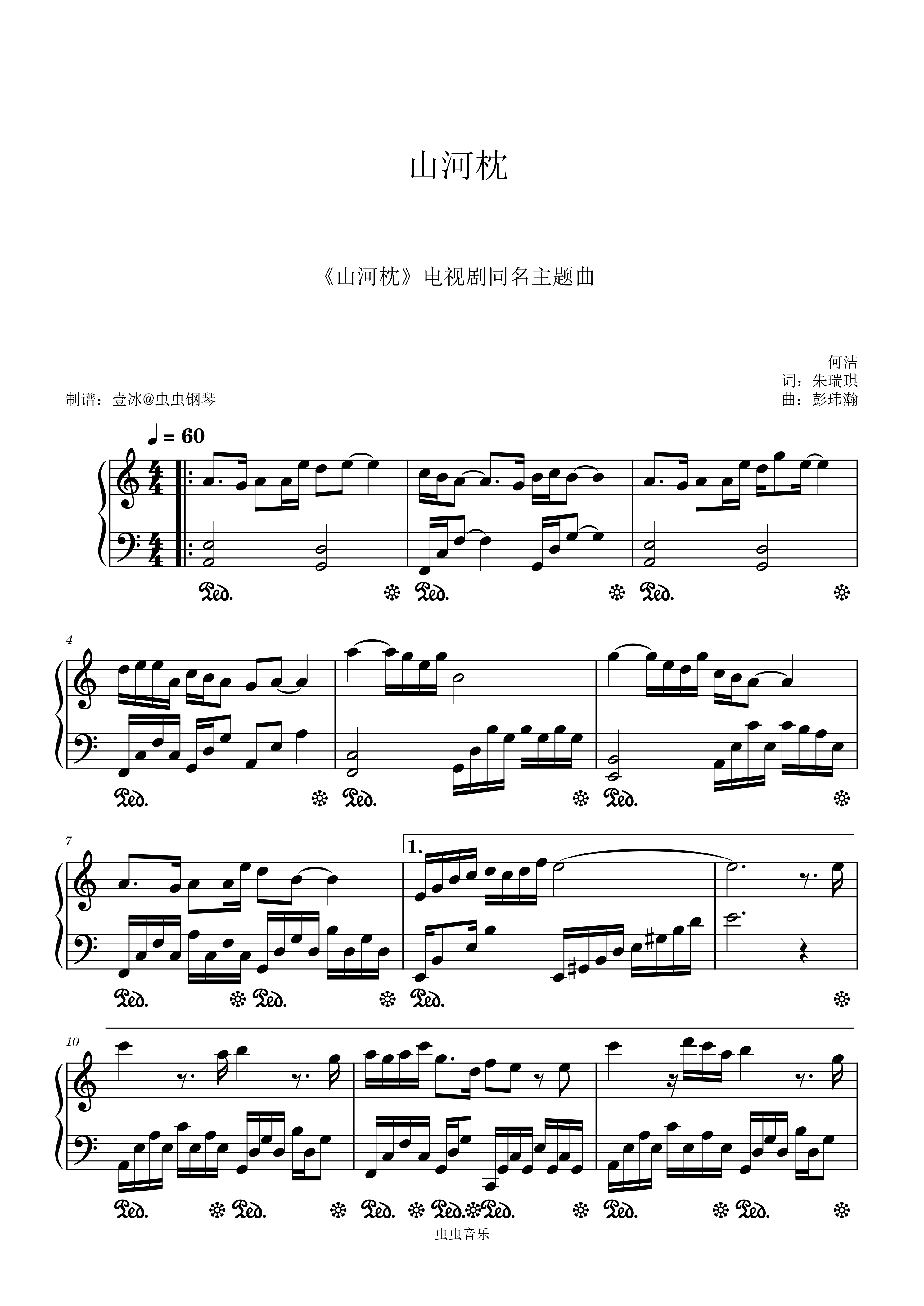 钢琴谱:山河枕 (《山河枕》电视剧同名主题曲) - 原调
