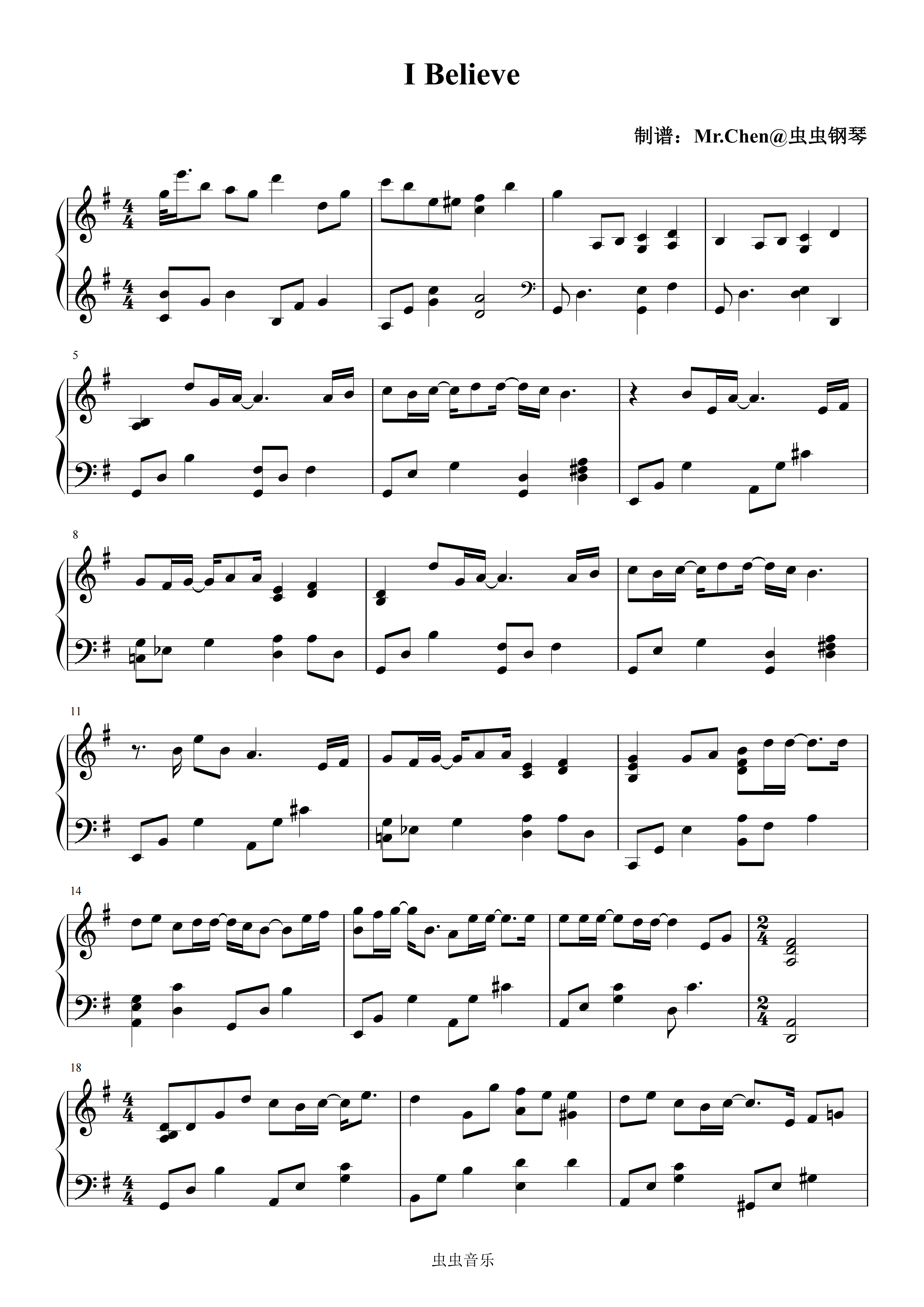 钢琴谱:I Believe - 韩国电影《我的野蛮女友》主题曲