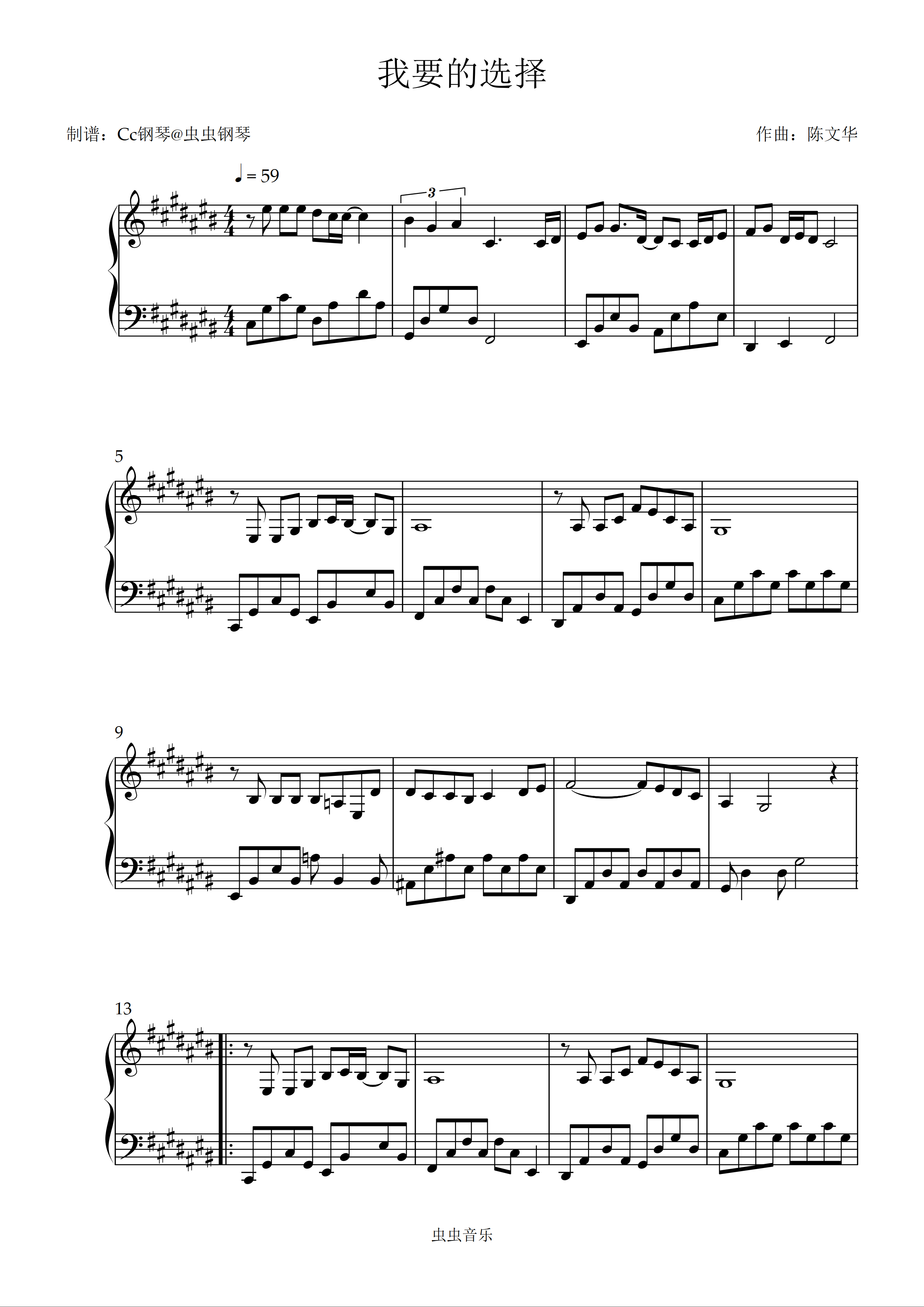 • 一时的选择钢琴简谱 E调 数字双手 蔡宥绮