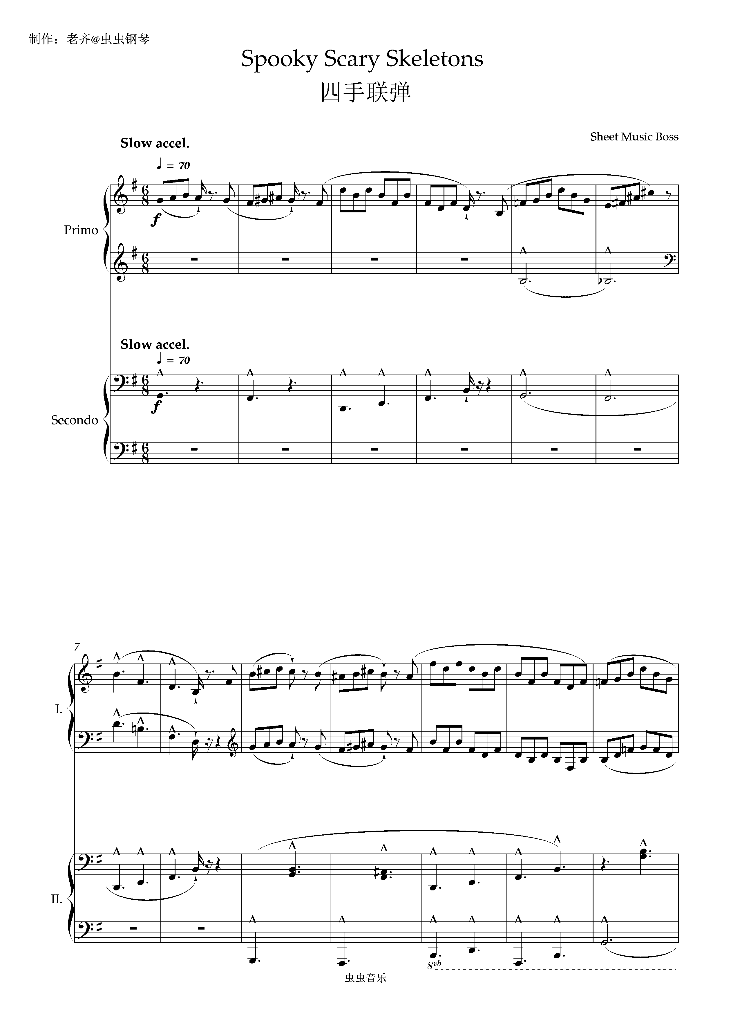 钢琴谱:【四手联弹】Spooky Scary Skeletons 幽灵小骷髅