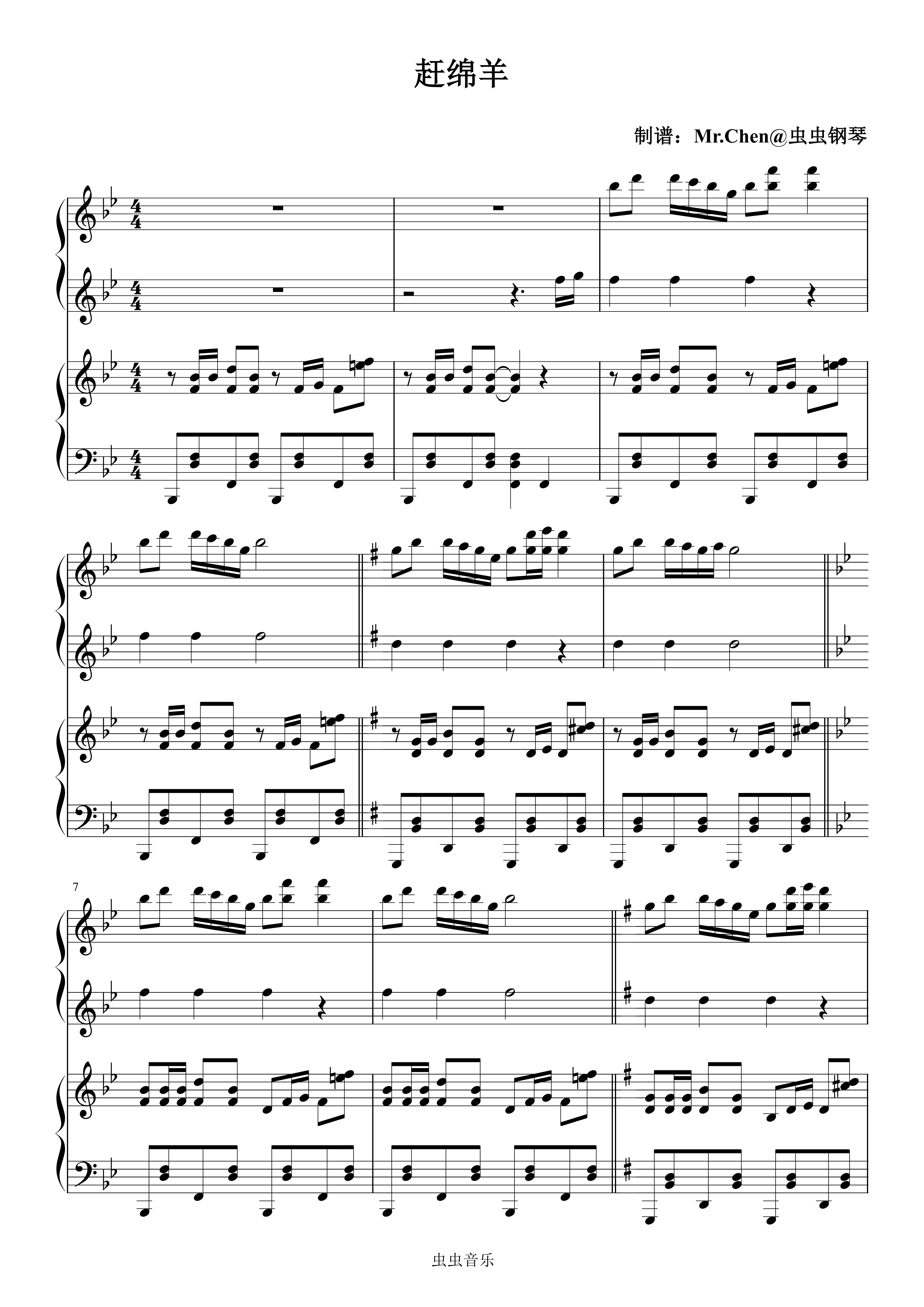 钢琴谱:赶绵羊 (四手联弹)- 好玩的小曲