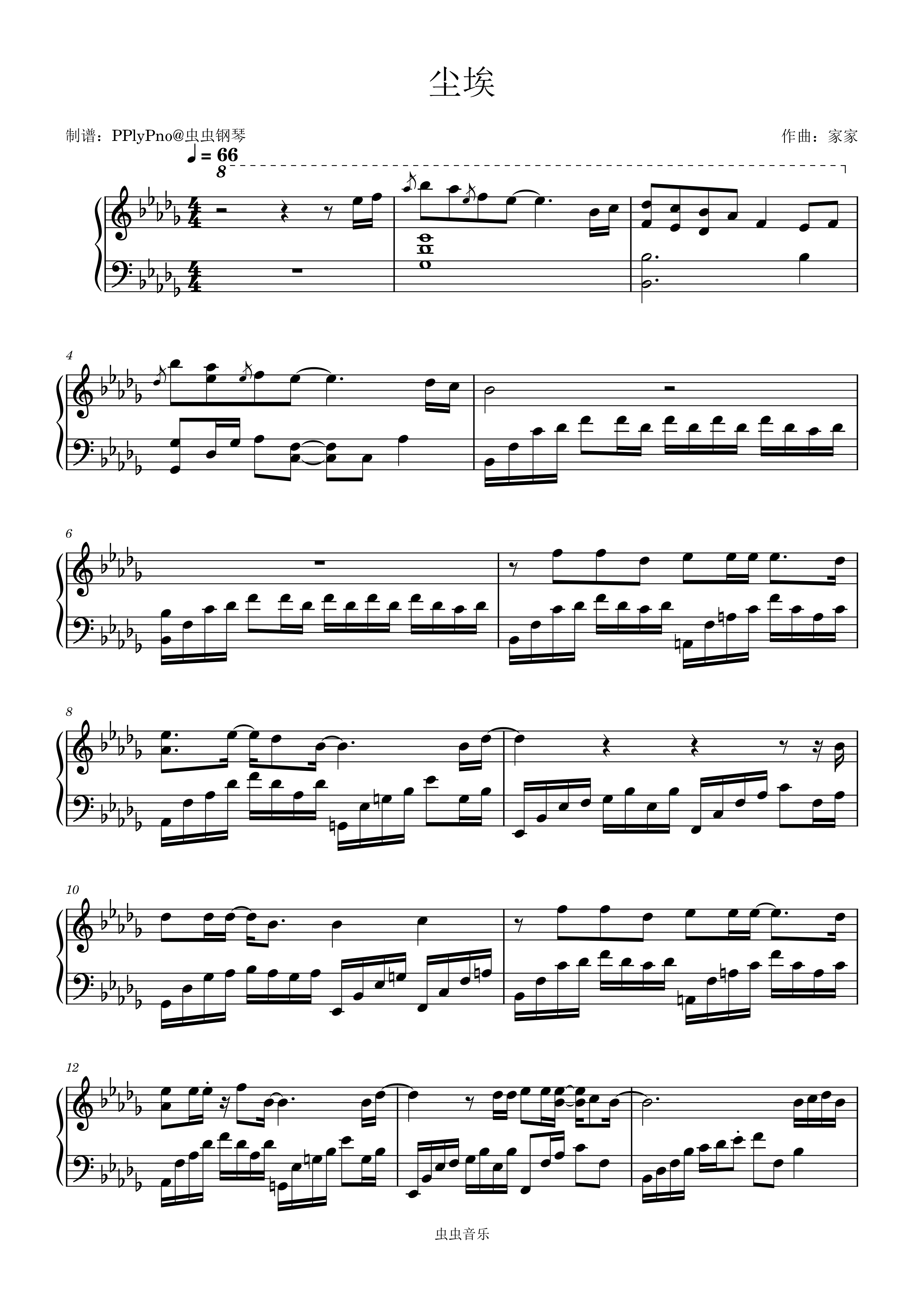 • 尘埃钢琴简谱 C调 数字双手 木兰号AKA陈韦伶