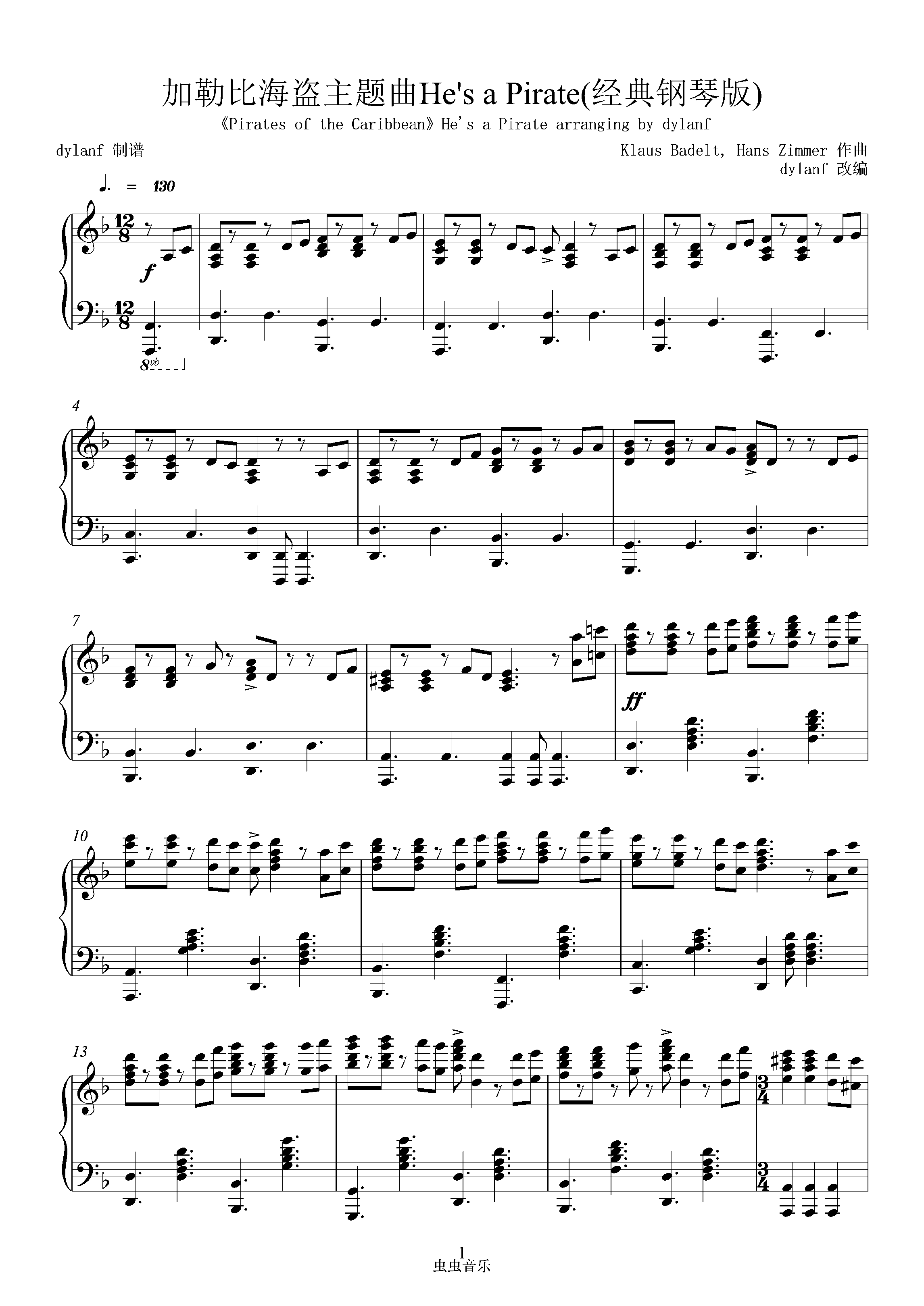 • Pirates Of The Caribbean(Primo)Arr.by RayKana钢琴简谱 - 数字双手
