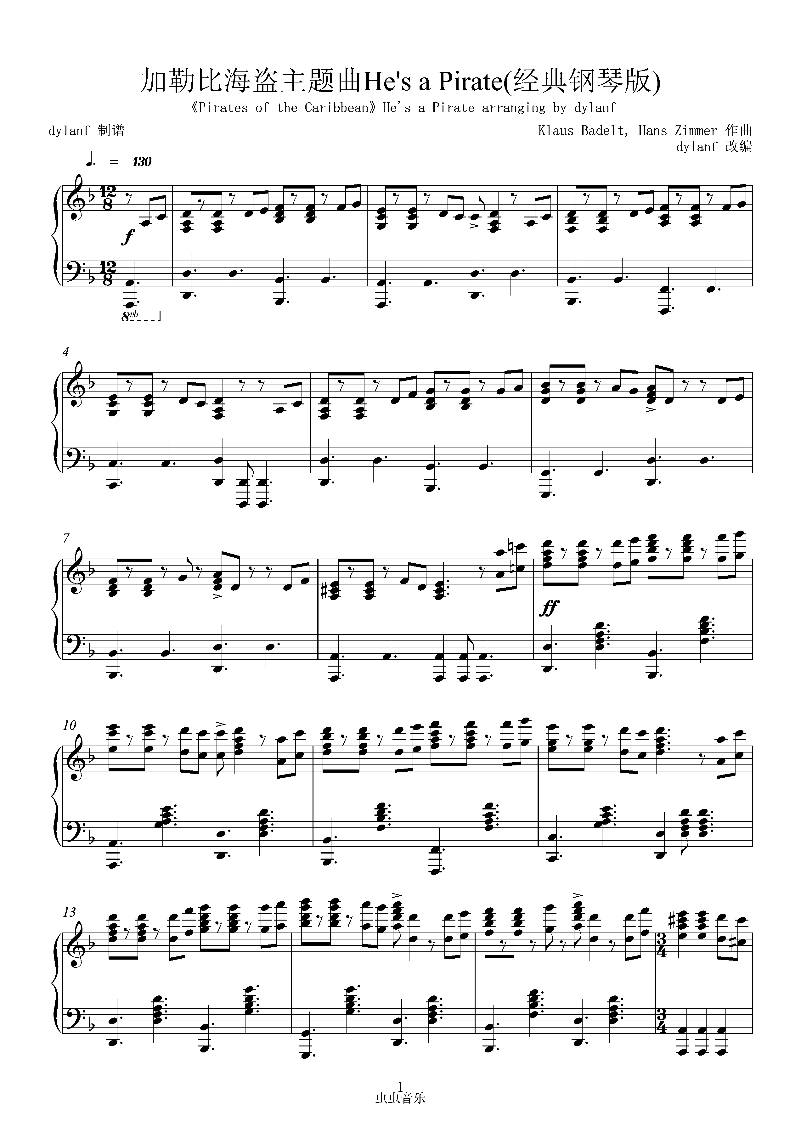 钢琴谱:Pirates of the Caribbean(原版)