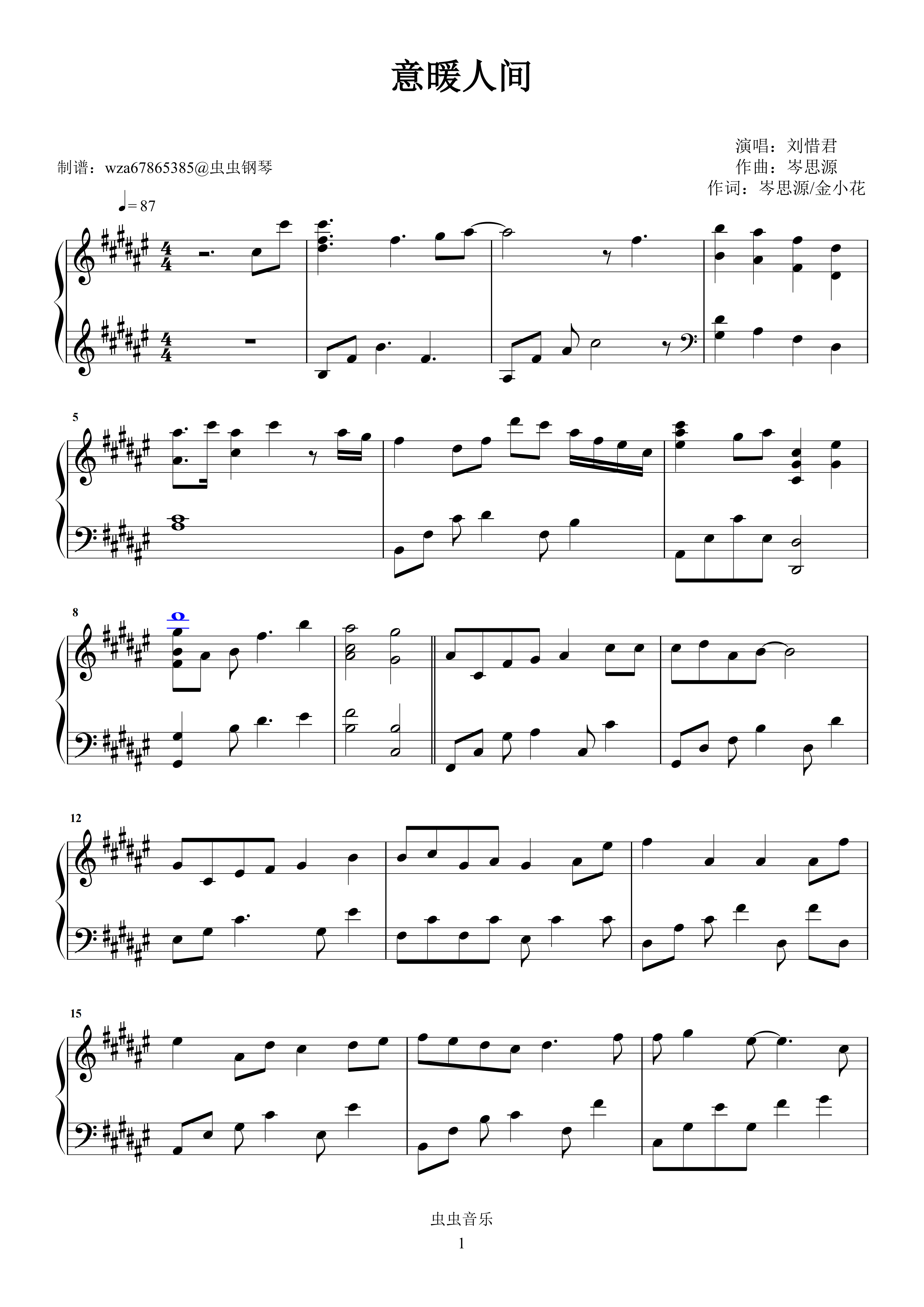 钢琴谱:意暖人间