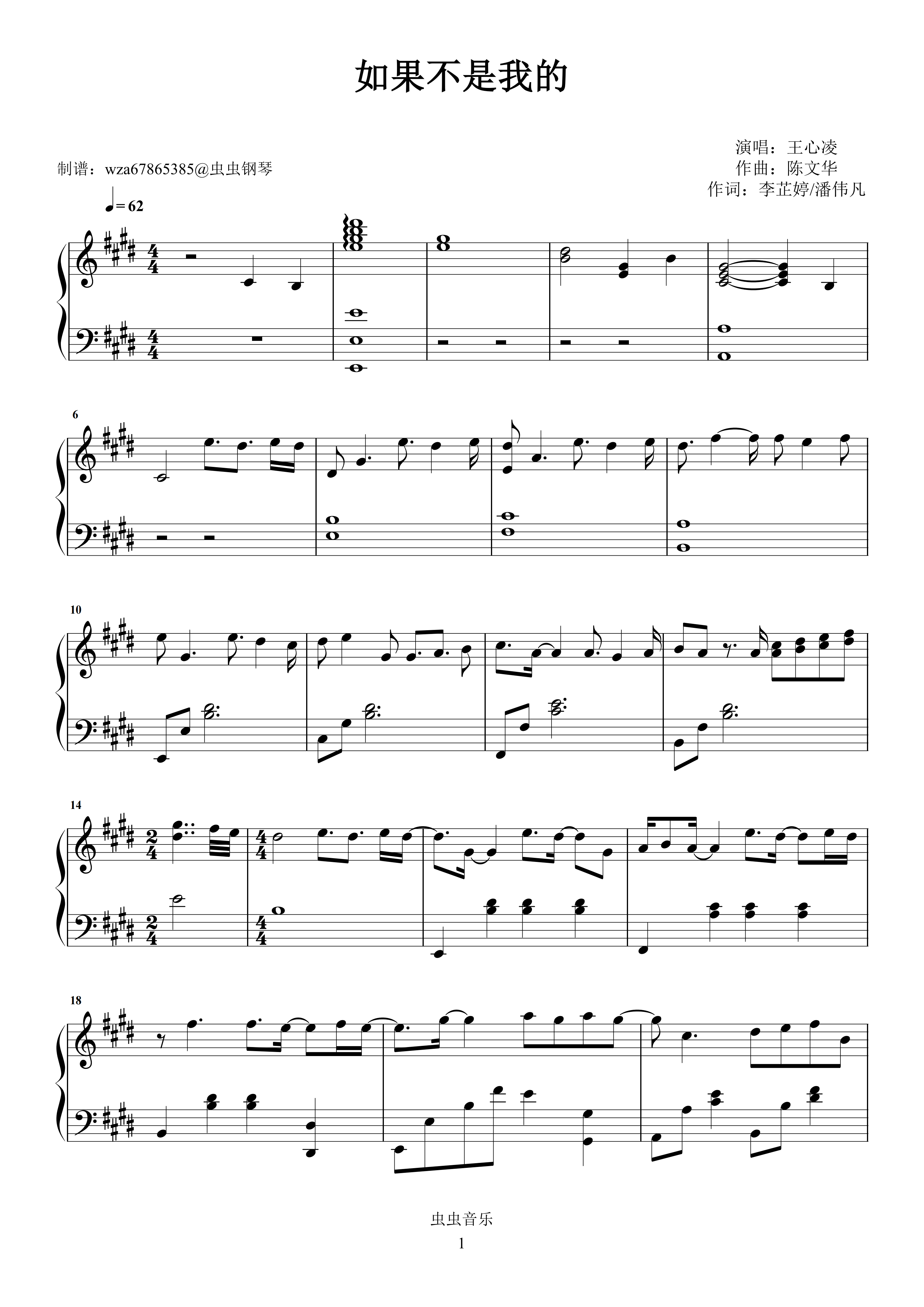 钢琴谱:如果不是我的