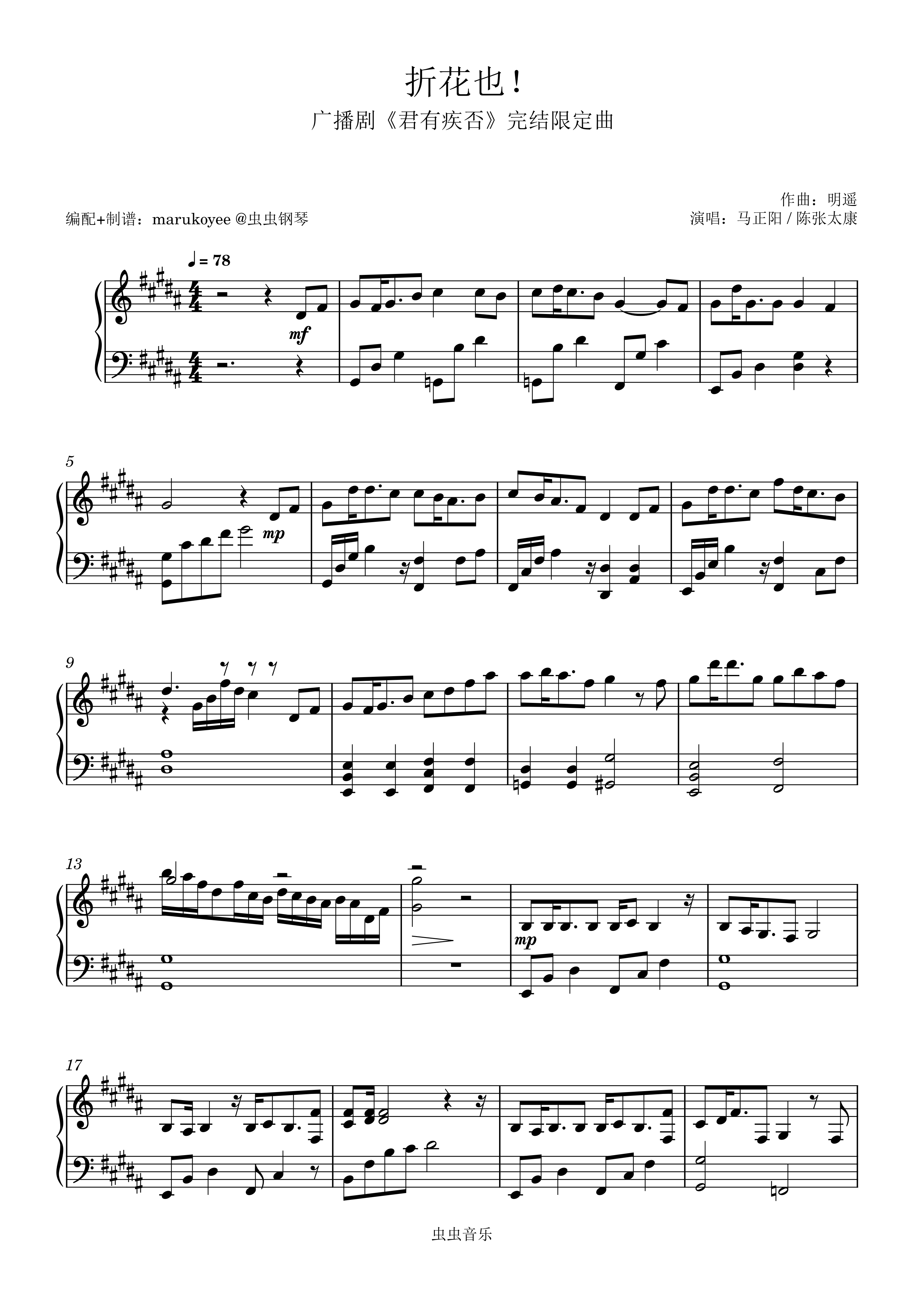 钢琴谱:【君有疾否广播剧】第二季完结限定曲《折花也!》(原调B)