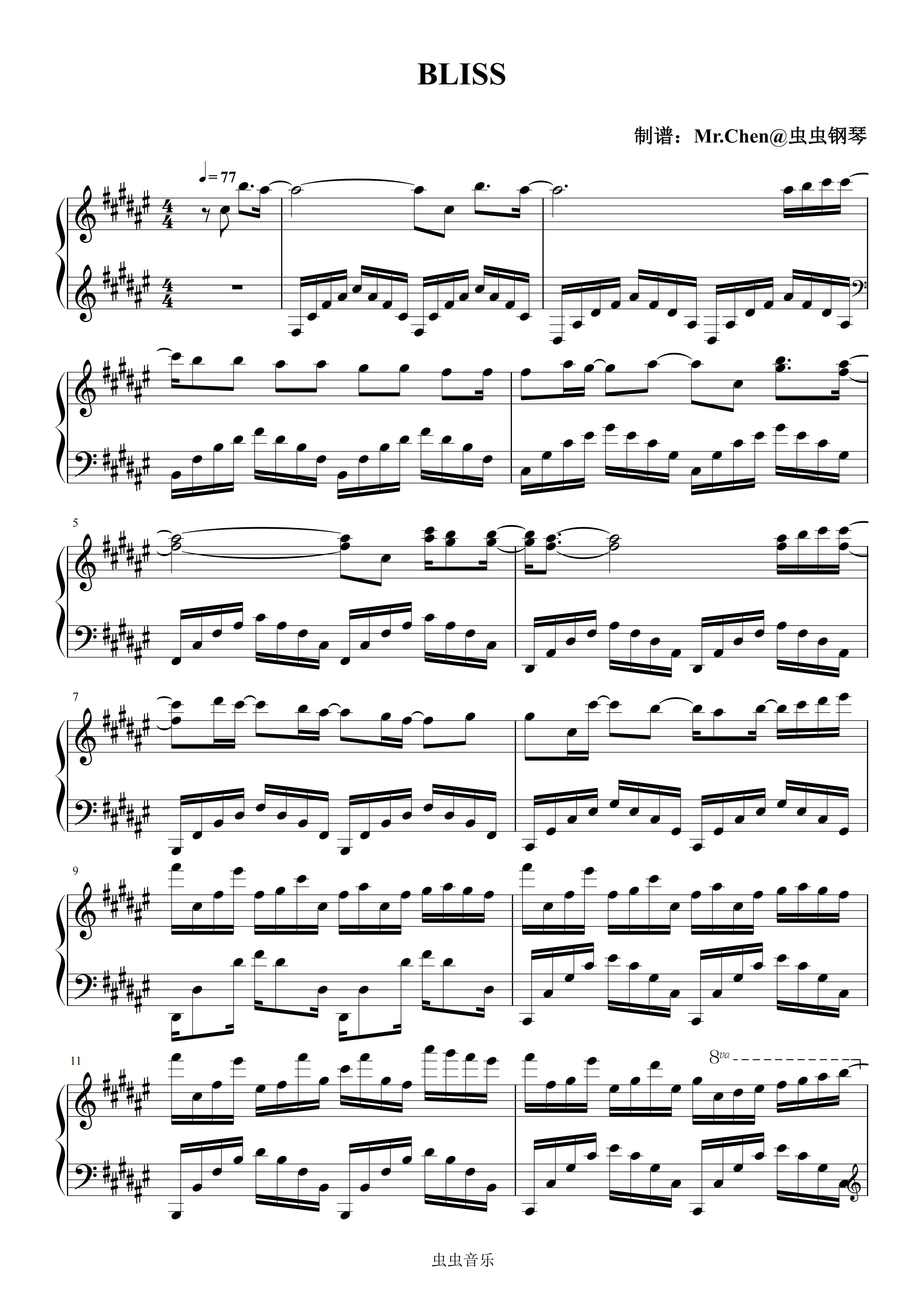 • BLISS钢琴简谱 G调 数字双手 Ken Arai
