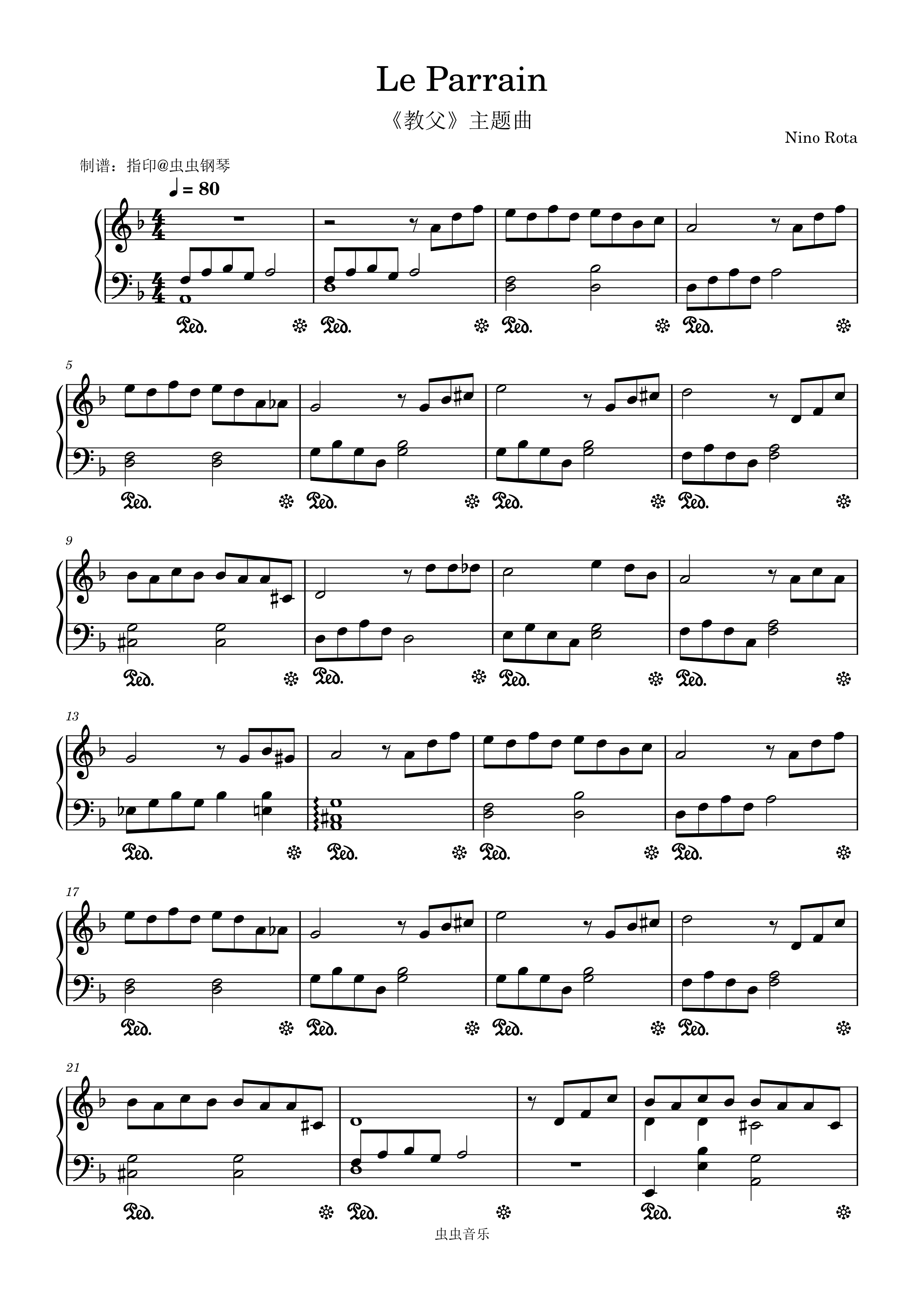 钢琴谱:电影《教父》主题曲《Le Parrain》简易版