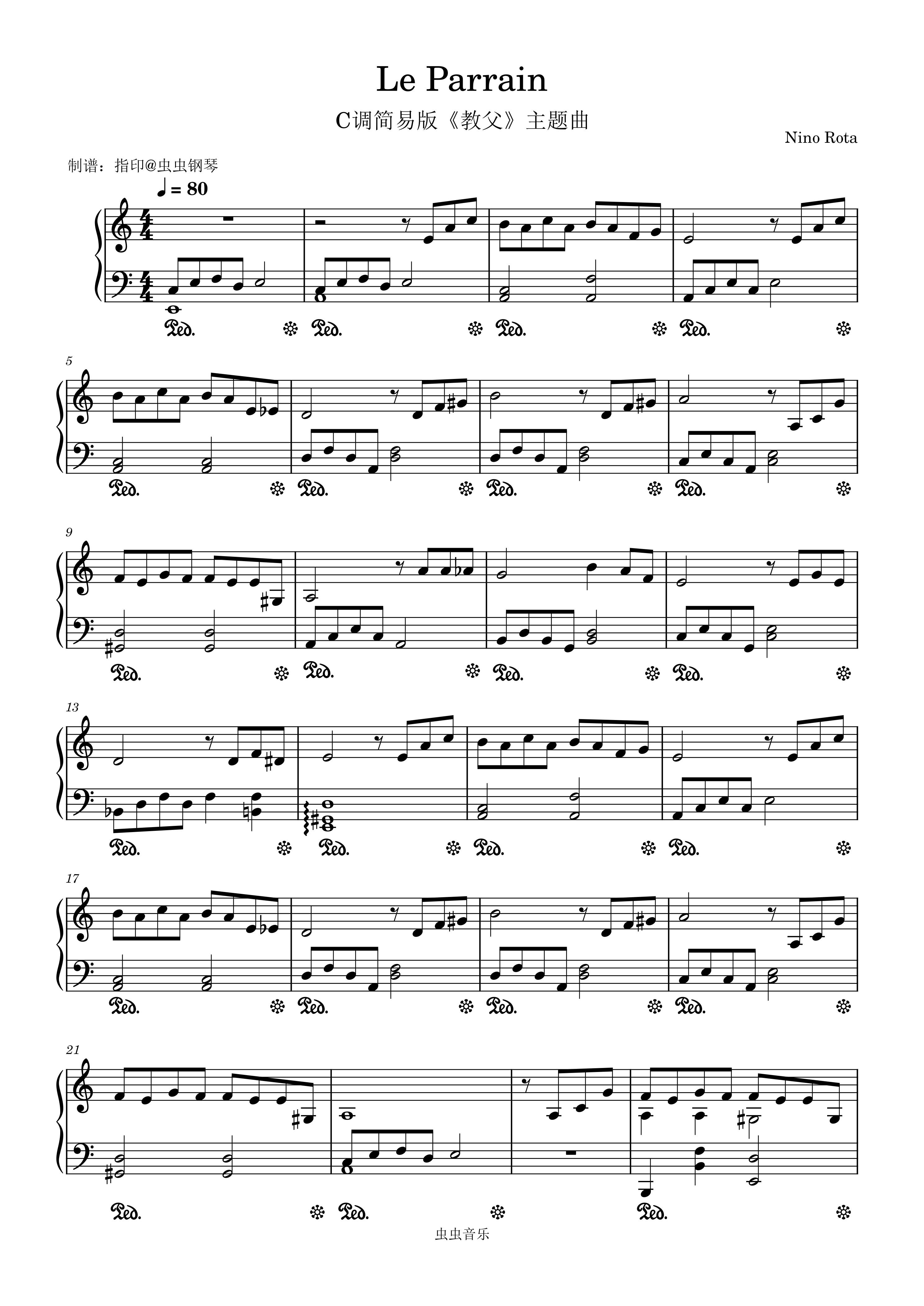 钢琴谱:C调简易版《Le Parrain》电影《教父》主题曲