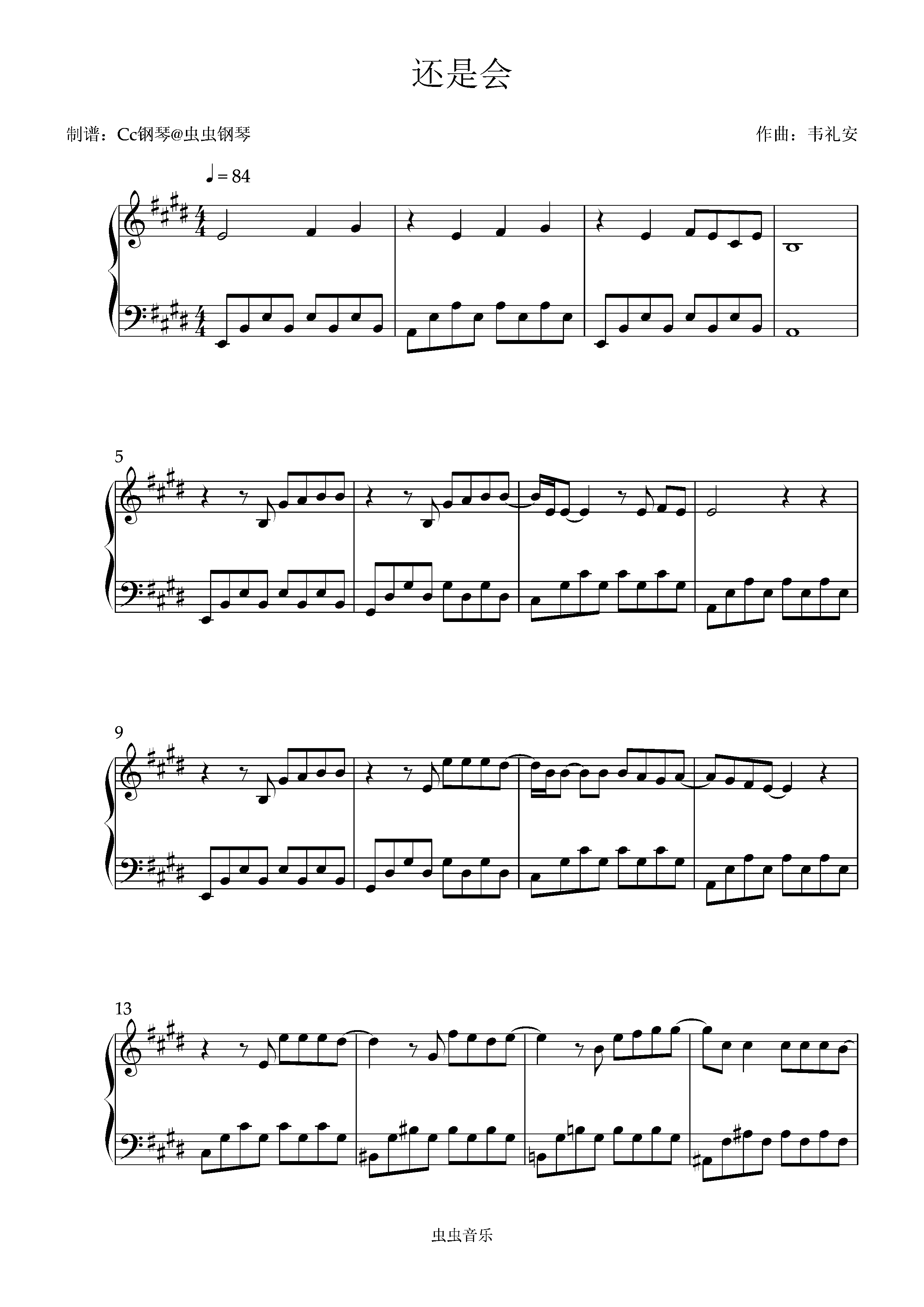 • 还是会想你钢琴简谱 Ab调 数字双手 林达浪/h3R3