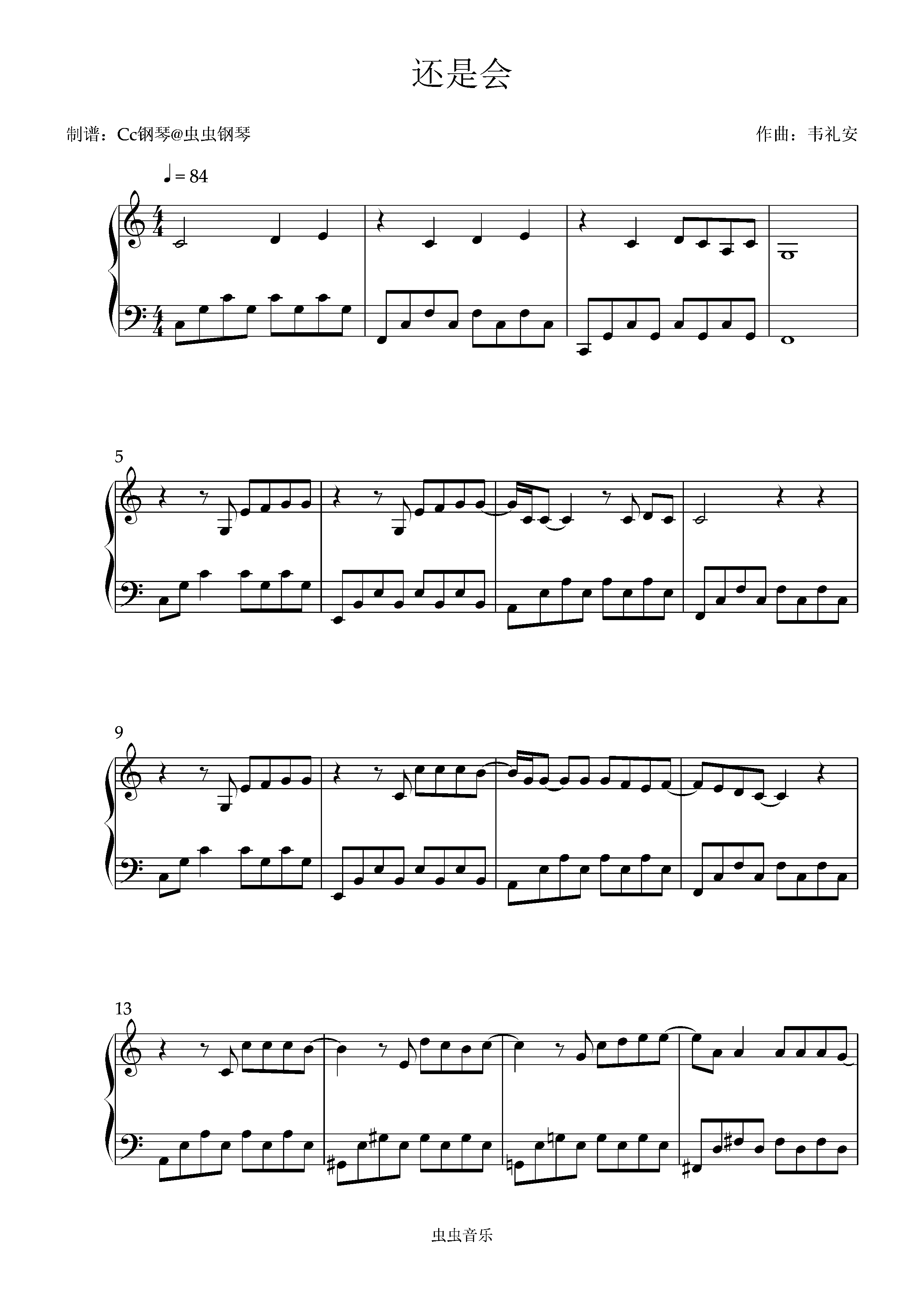 • 还是会想你钢琴简谱 Ab调 数字双手 林达浪/h3R3