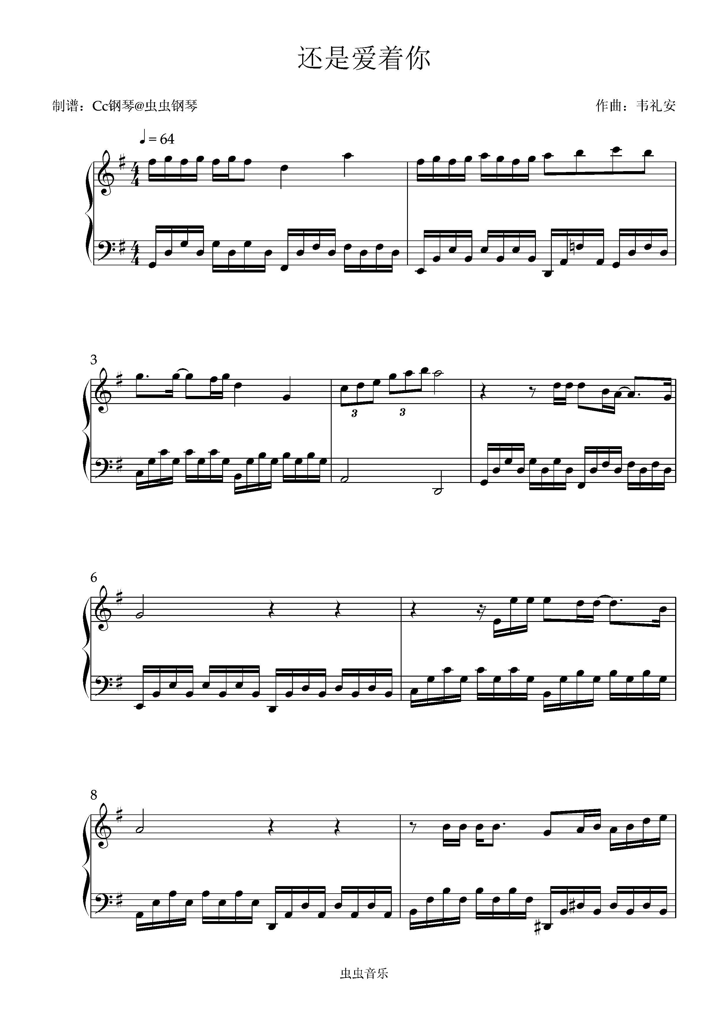 钢琴谱:还是爱着你 原调 好听易上手