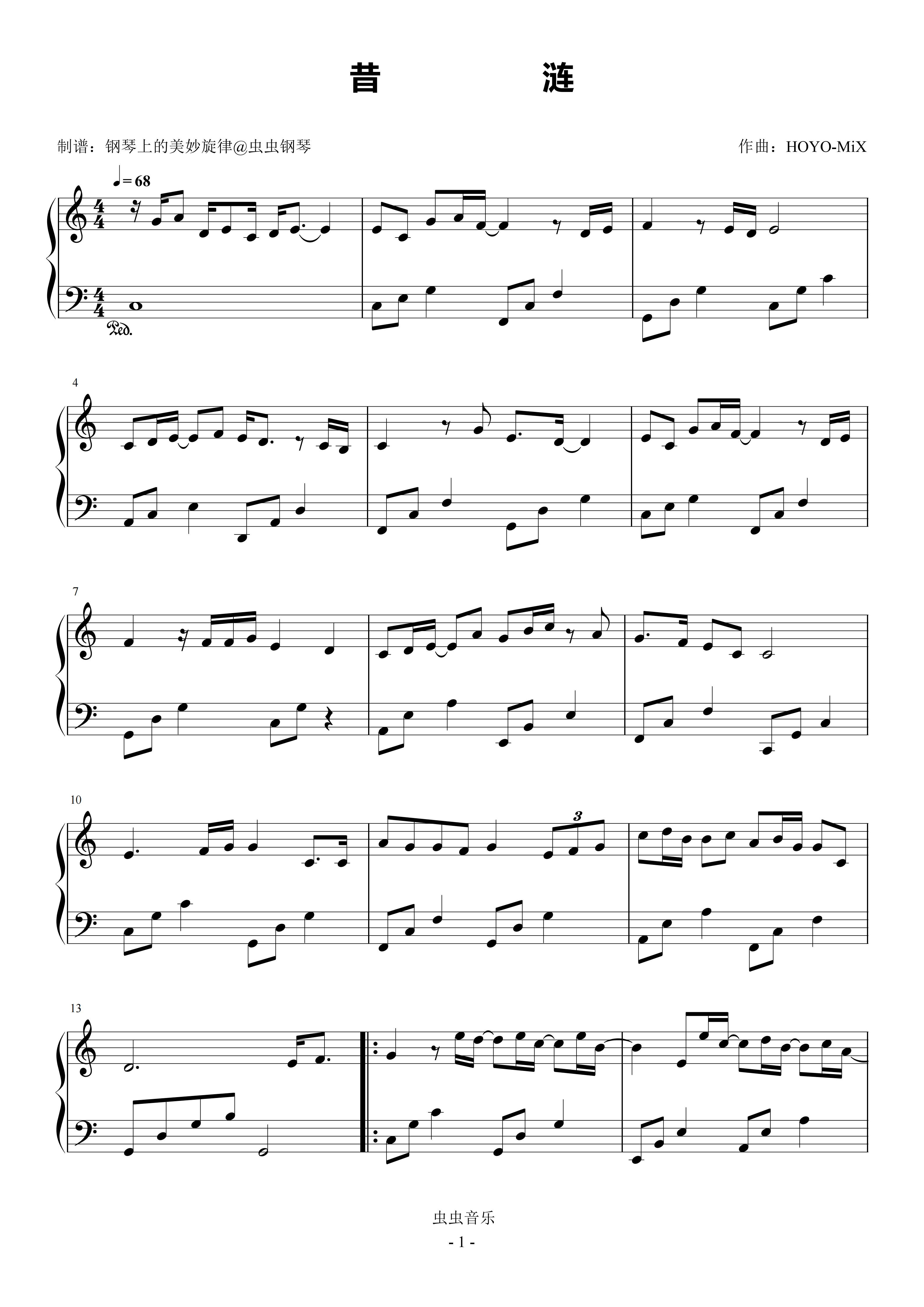 • 轻涟钢琴简谱 Eb调 数字双手 HOYO-mix