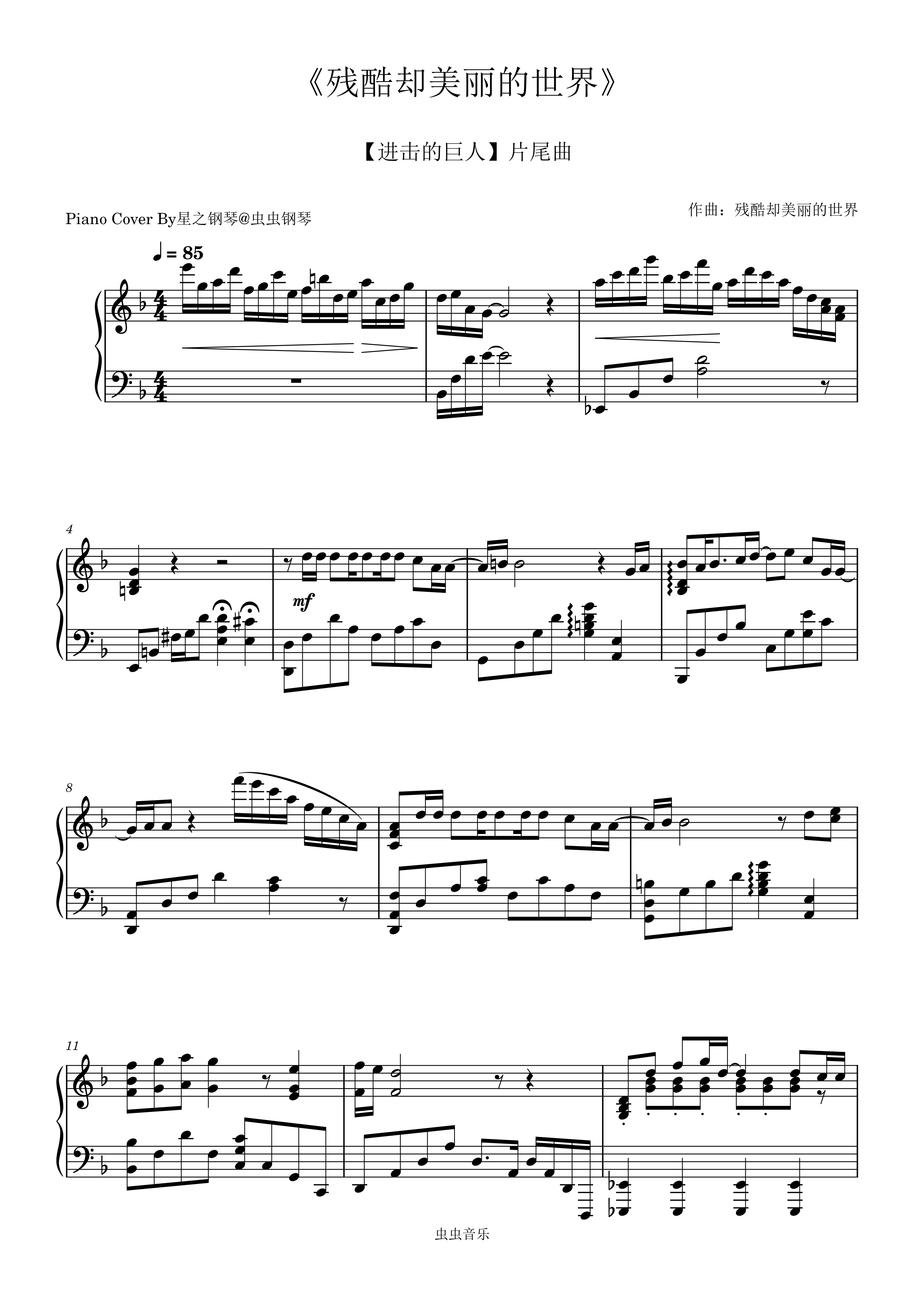 钢琴谱:【进击的巨人】片尾曲《残酷却美丽的世界》钢琴极限华丽版~星之钢琴~