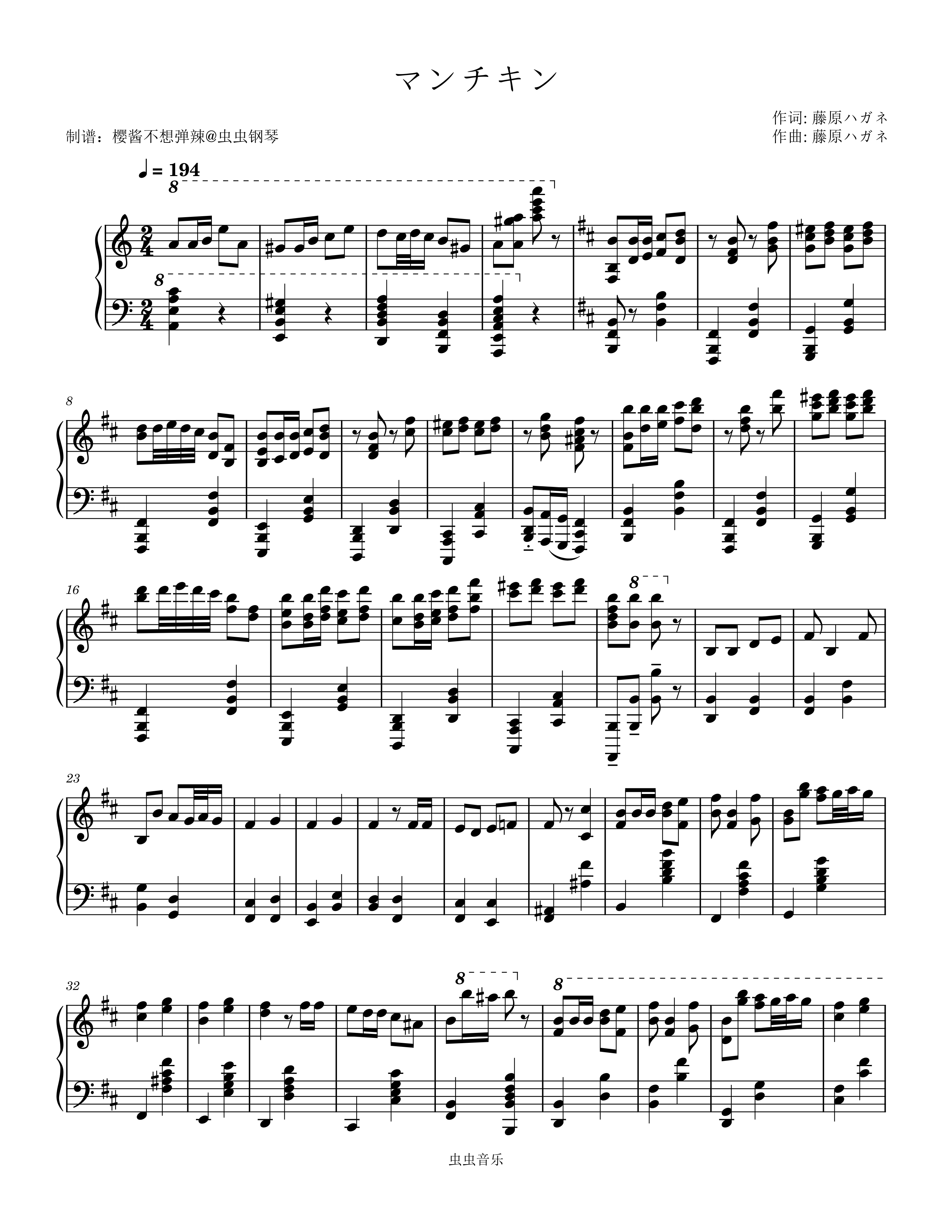 钢琴谱:マンチキン (曼奇金)藤原ハガネ/重音テト