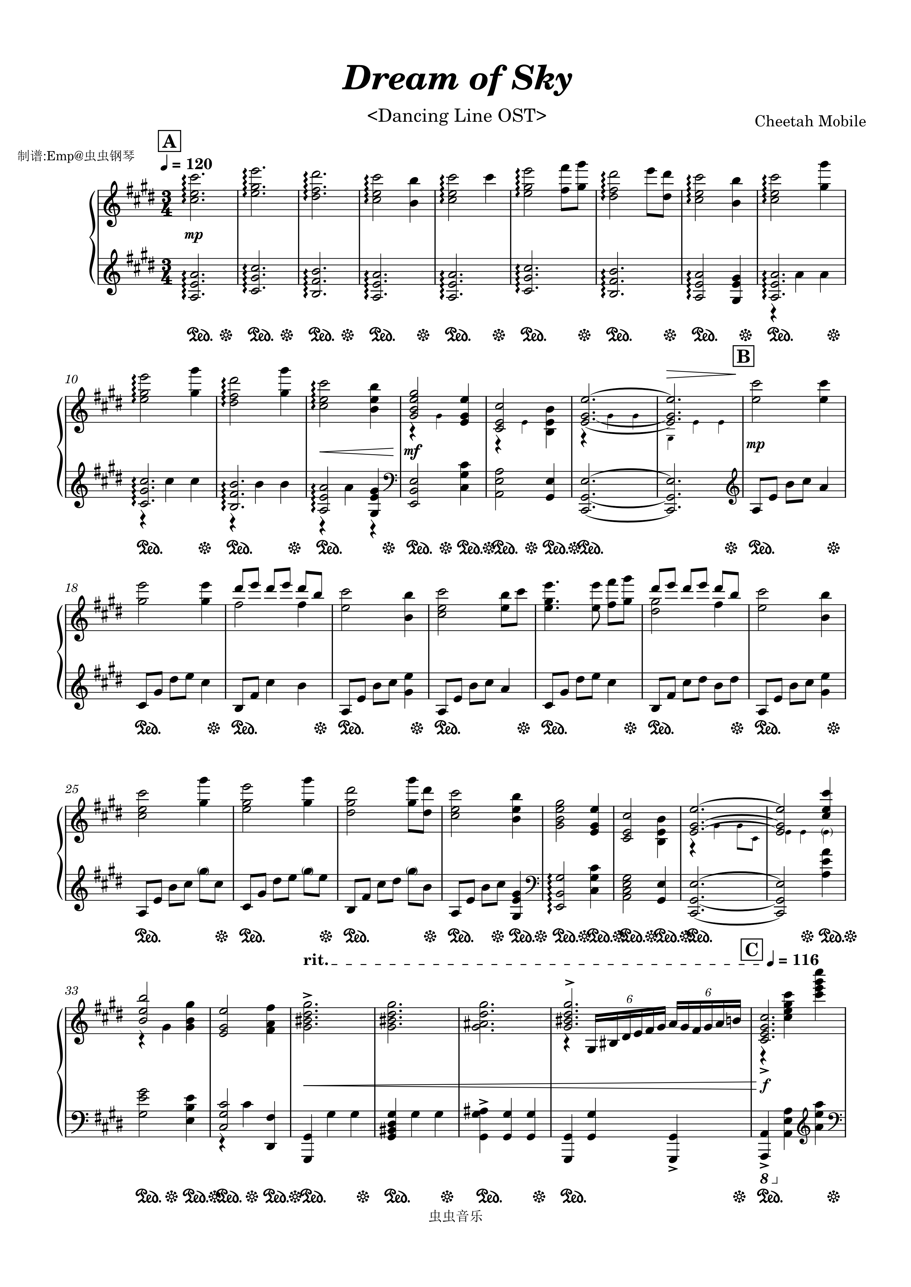 钢琴谱:Dream of Sky(天空之梦) — Dancing Line OST 钢琴改编