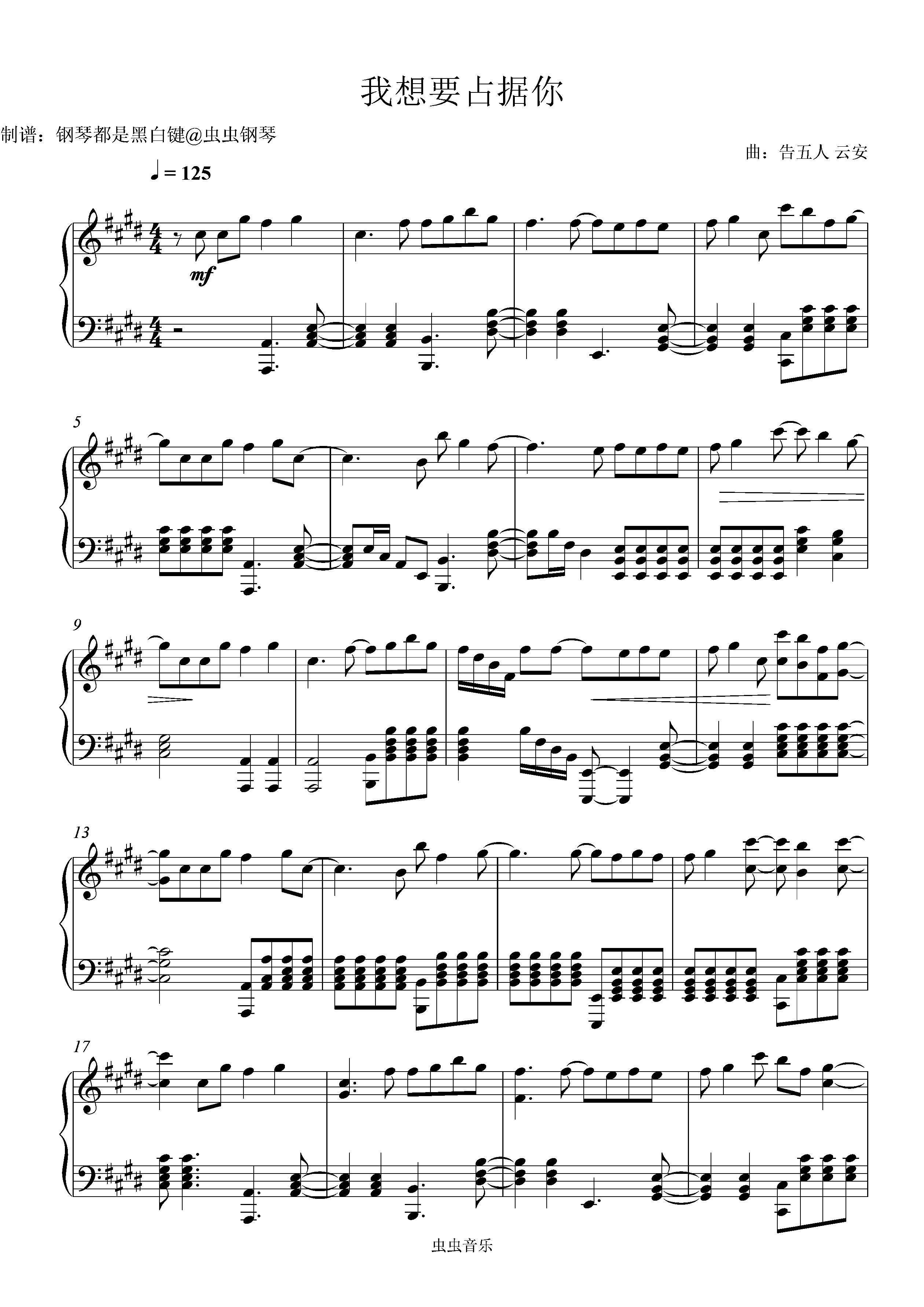 钢琴谱:告五人《我想要占据你》钢琴演奏版