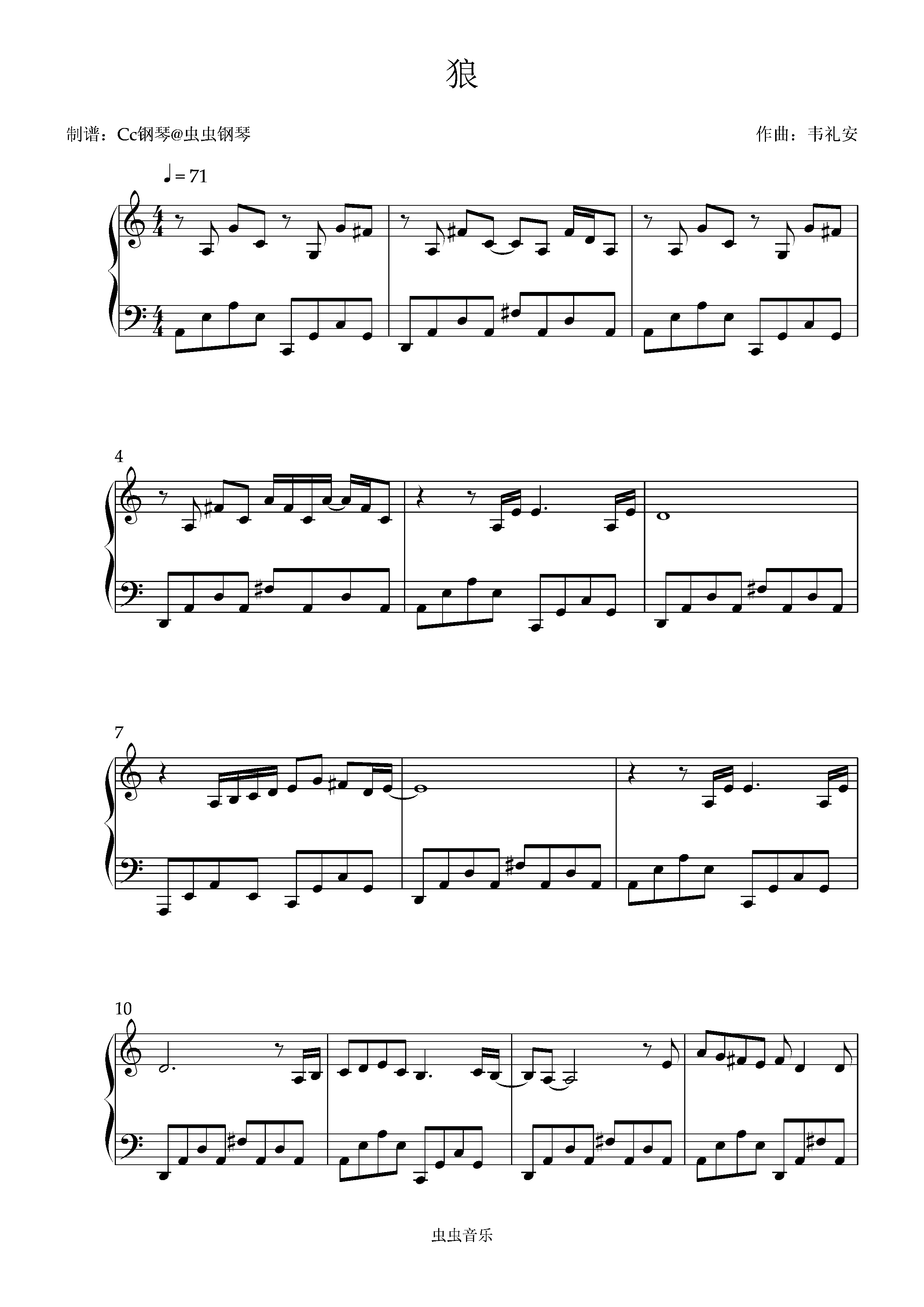• 狼钢琴简谱 a调 数字双手 齐秦