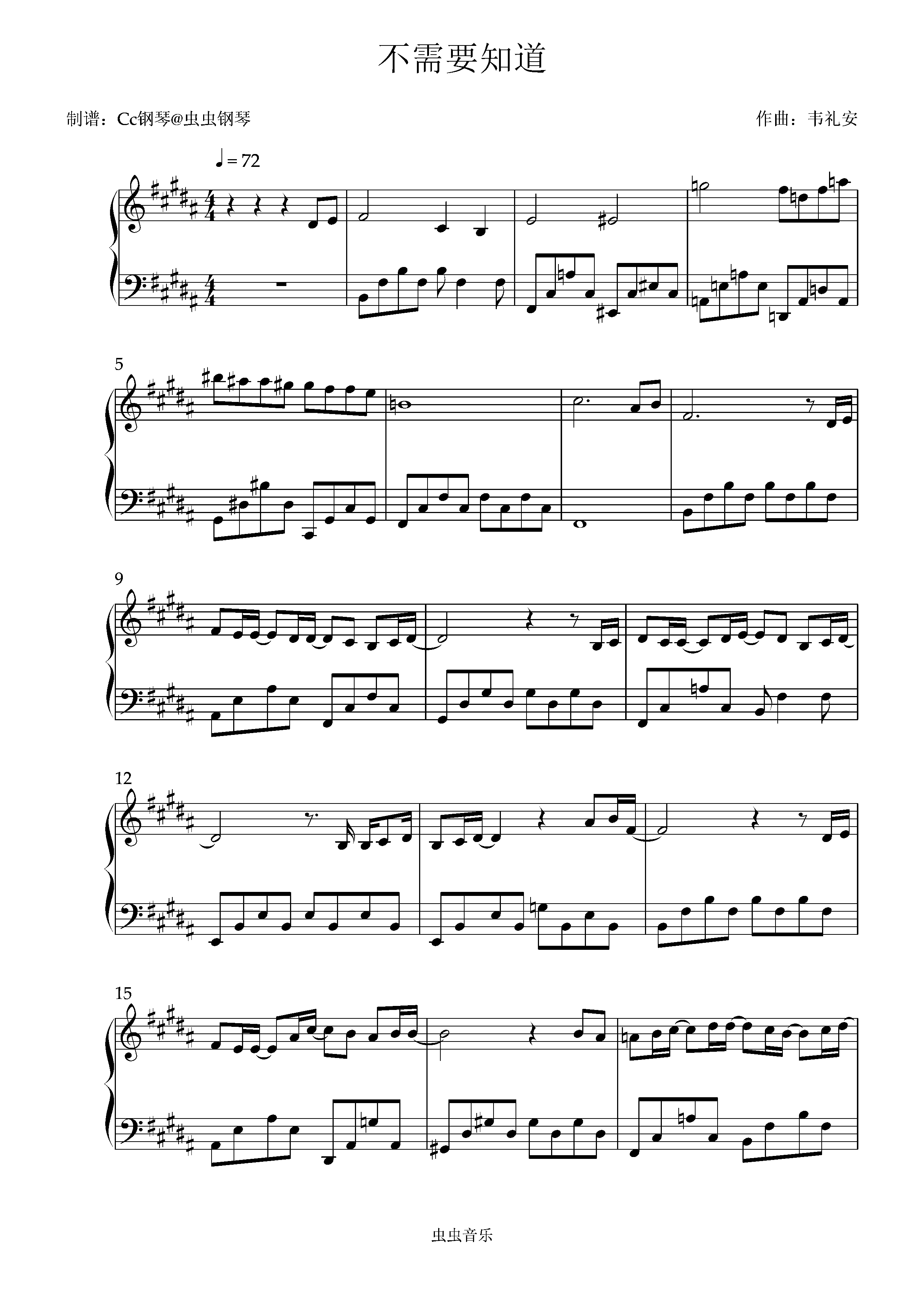钢琴谱:不需要知道 原调 好听易上手