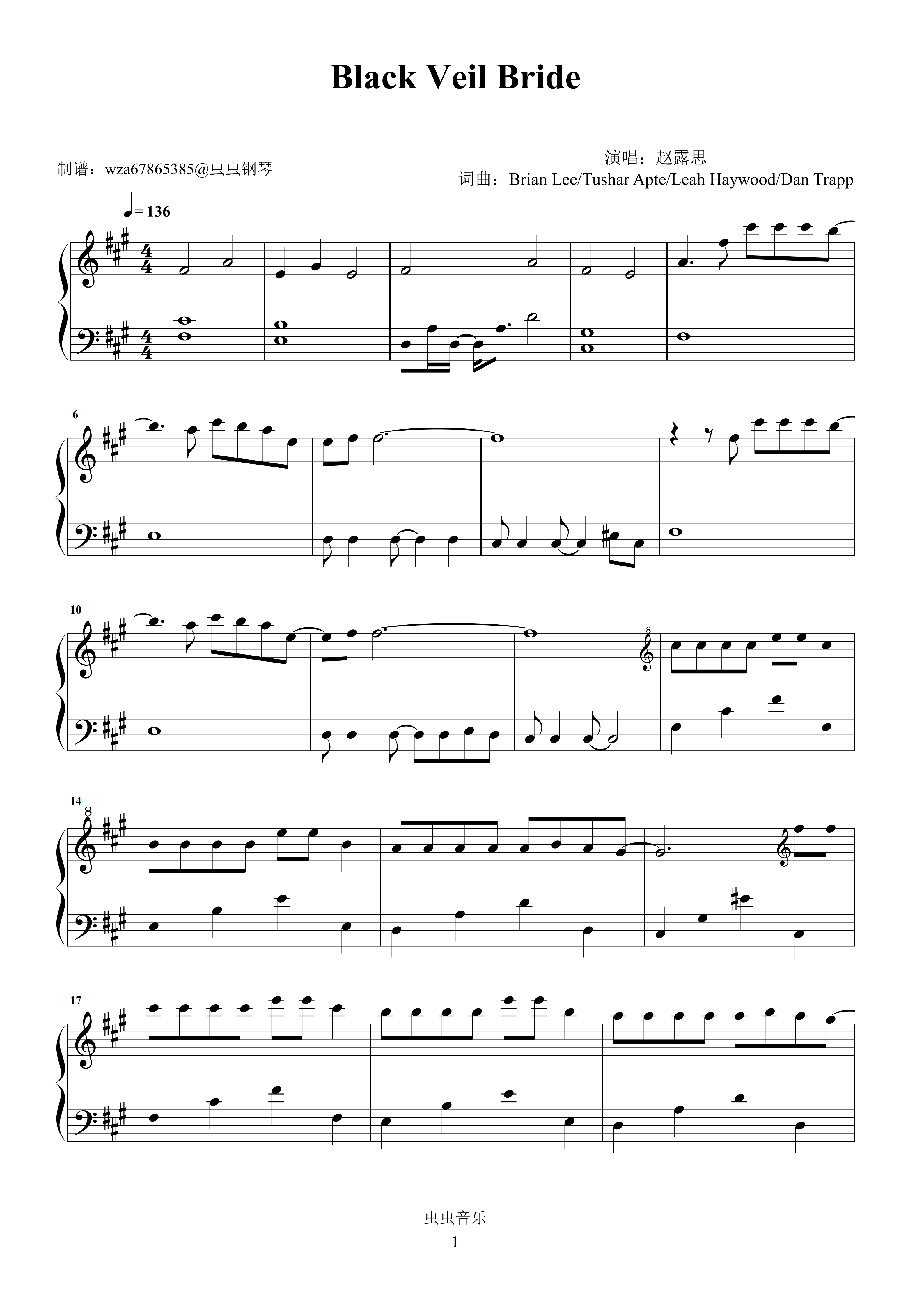 Black Veil Bride钢琴简谱 数字双手 Brian Lee/Tushar Apte/Leah Haywood/Dan Trapp