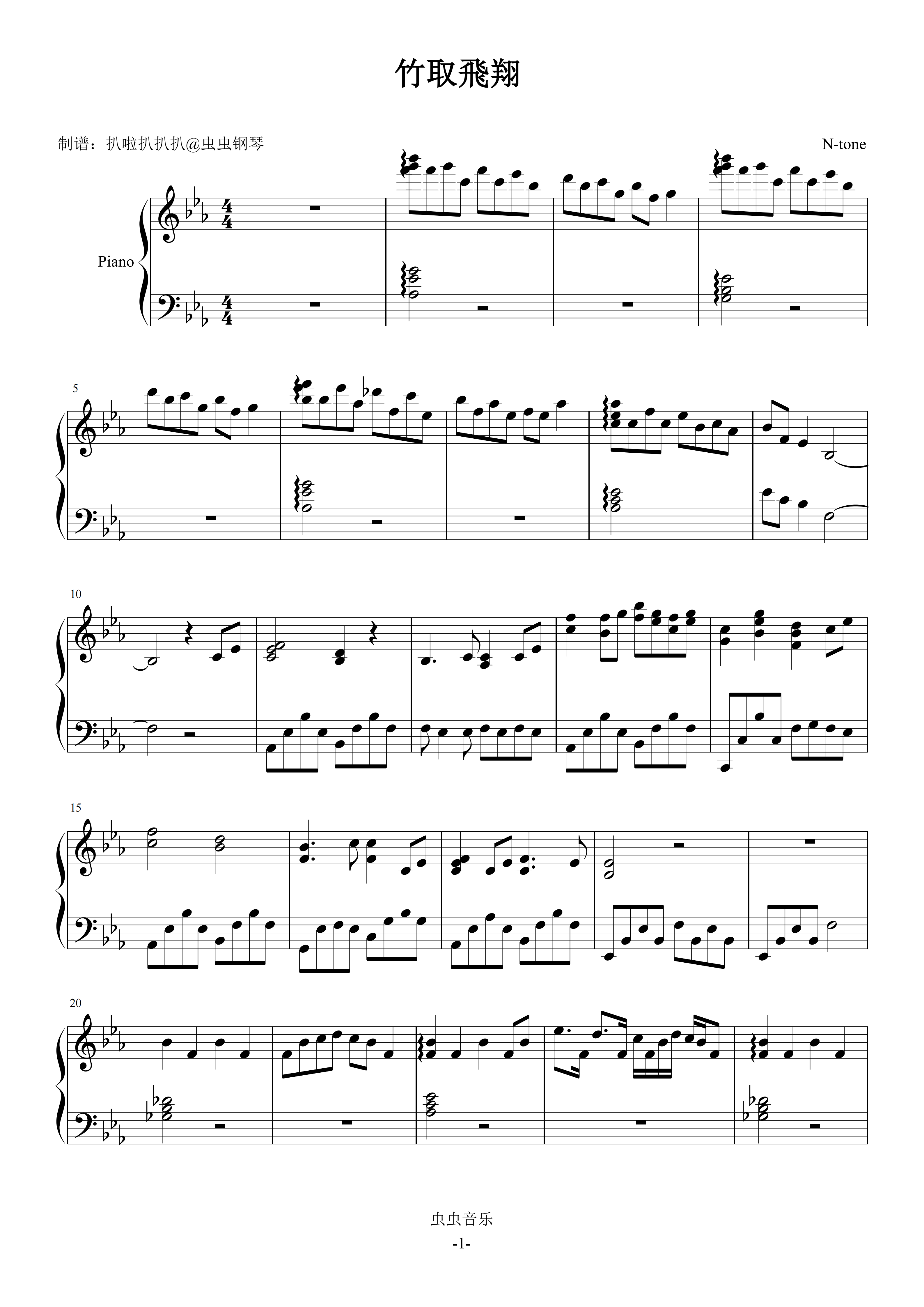 钢琴谱:竹取飛翔-N tone-钢琴演奏谱