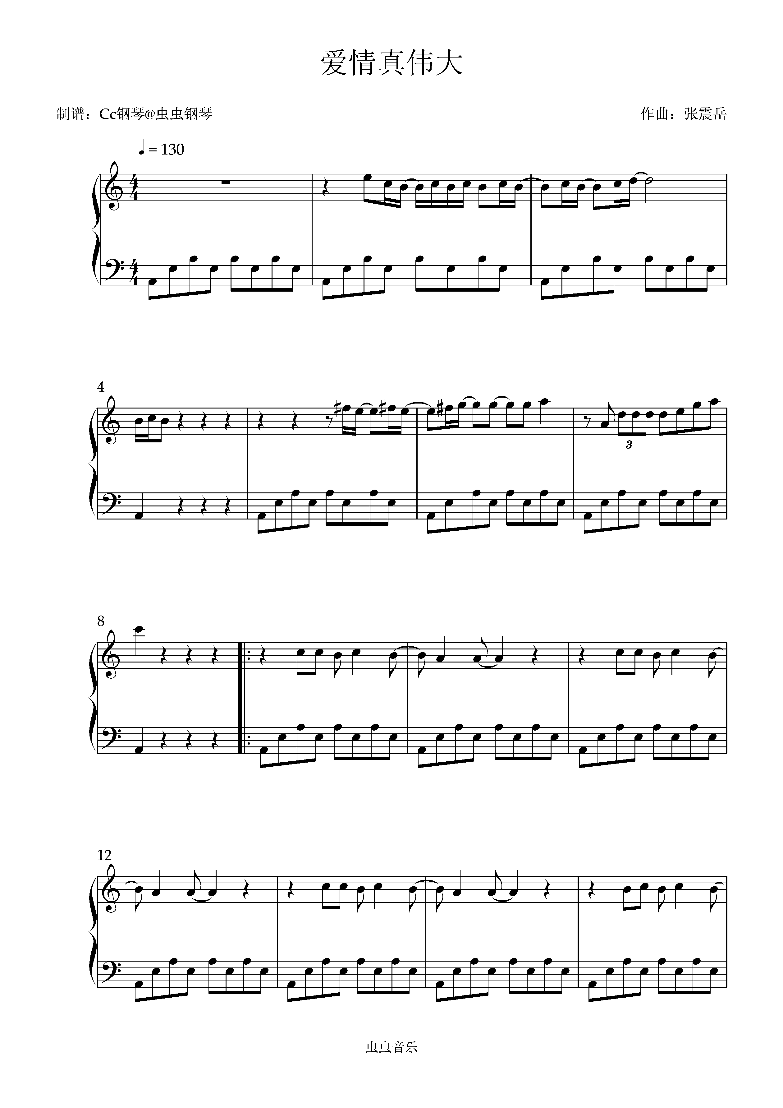 钢琴谱:爱情真伟大 C调 好听易上手