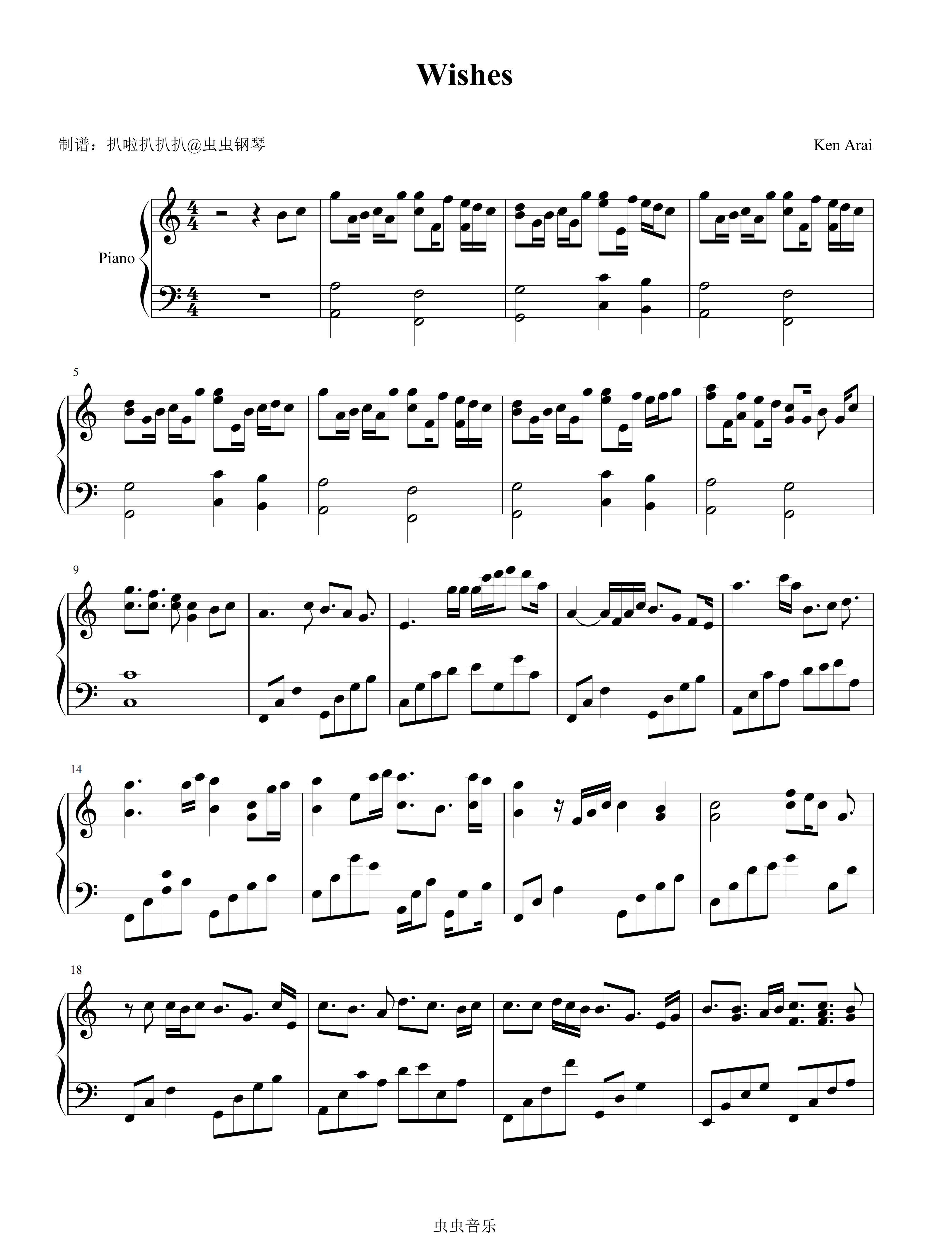 钢琴谱:Ken Arai-《WISHES》-钢琴演奏谱