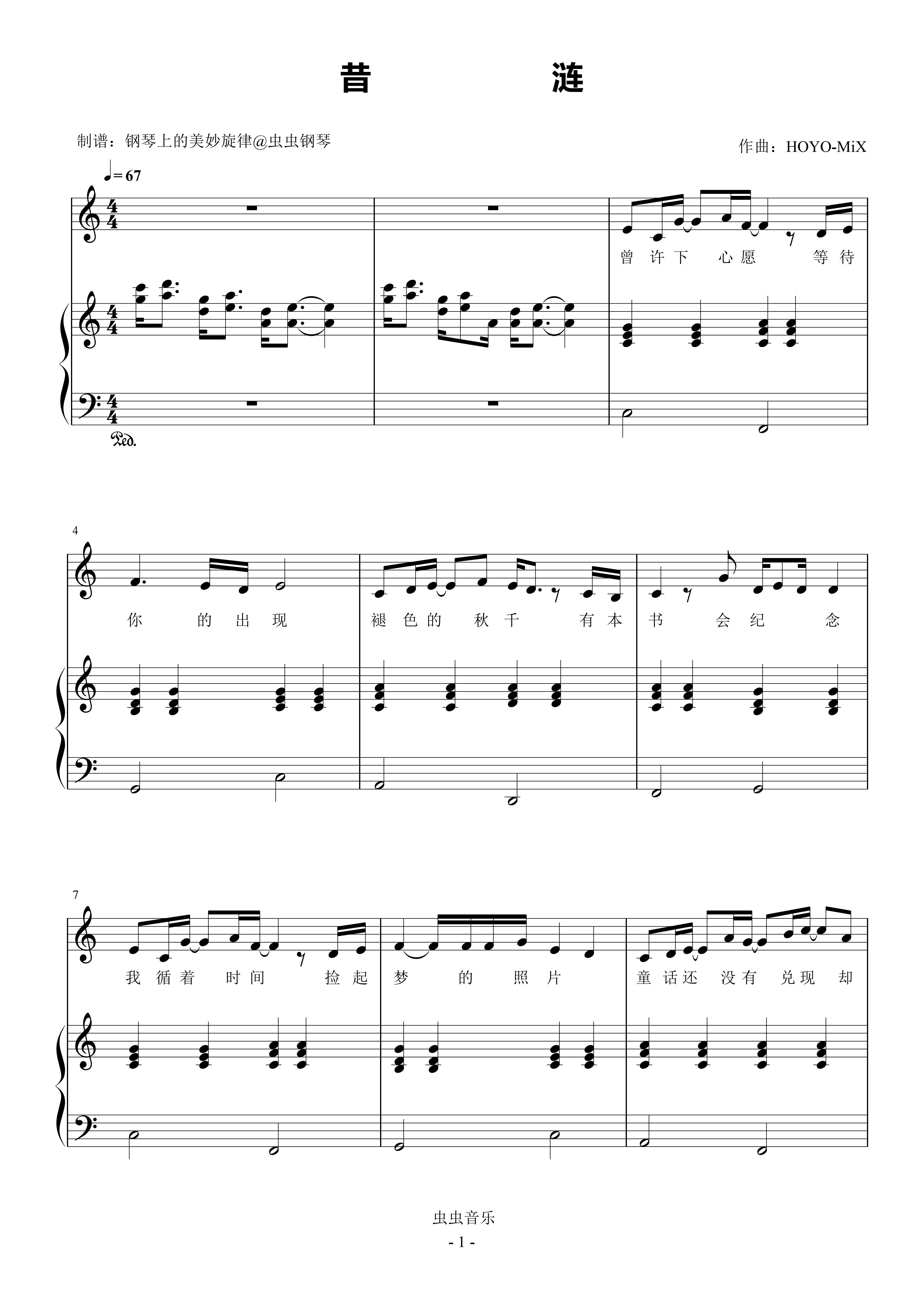 • 轻涟钢琴简谱 Eb调 数字双手 HOYO-mix