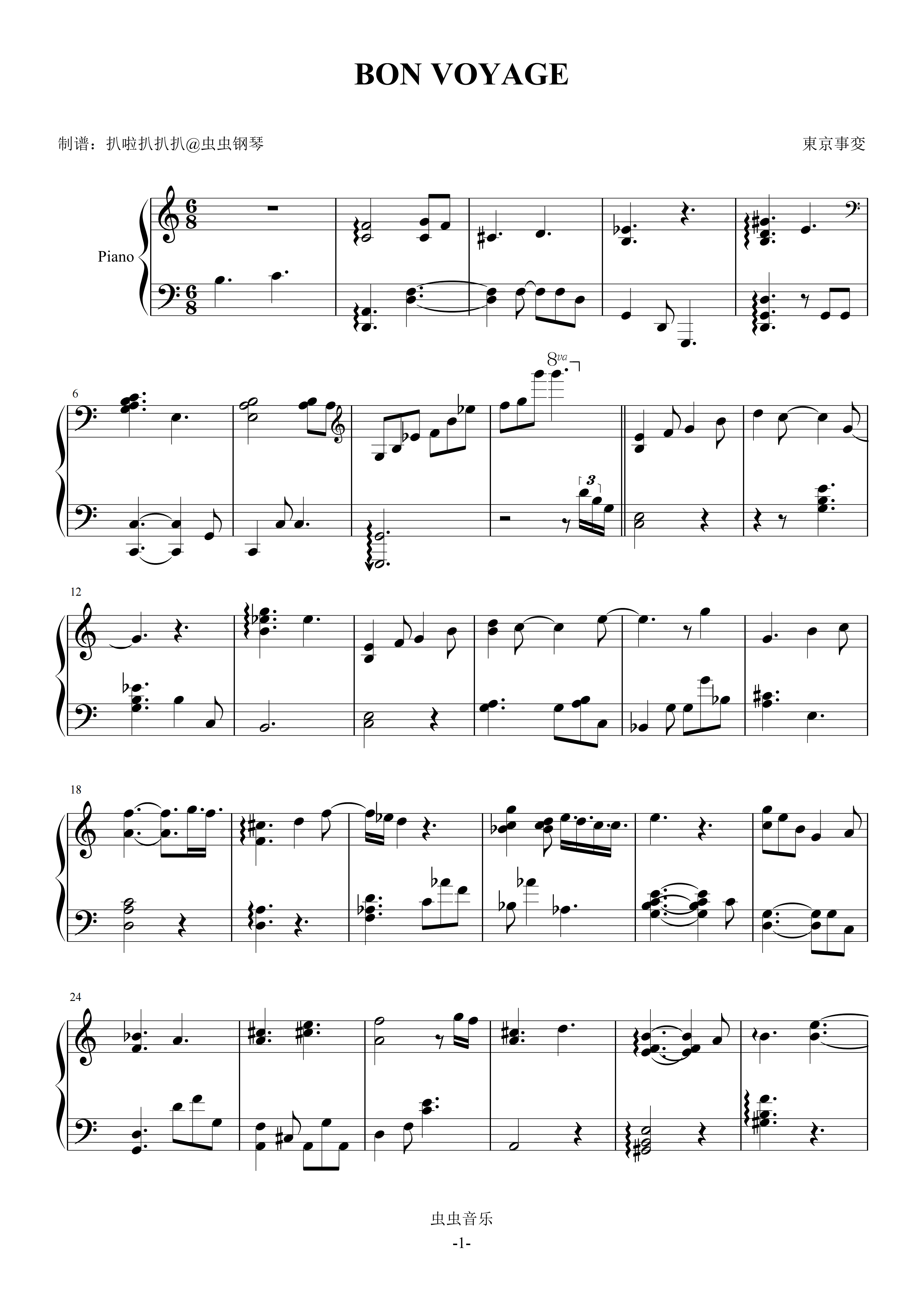 • BON VOYAGE!钢琴简谱 C调 数字双手