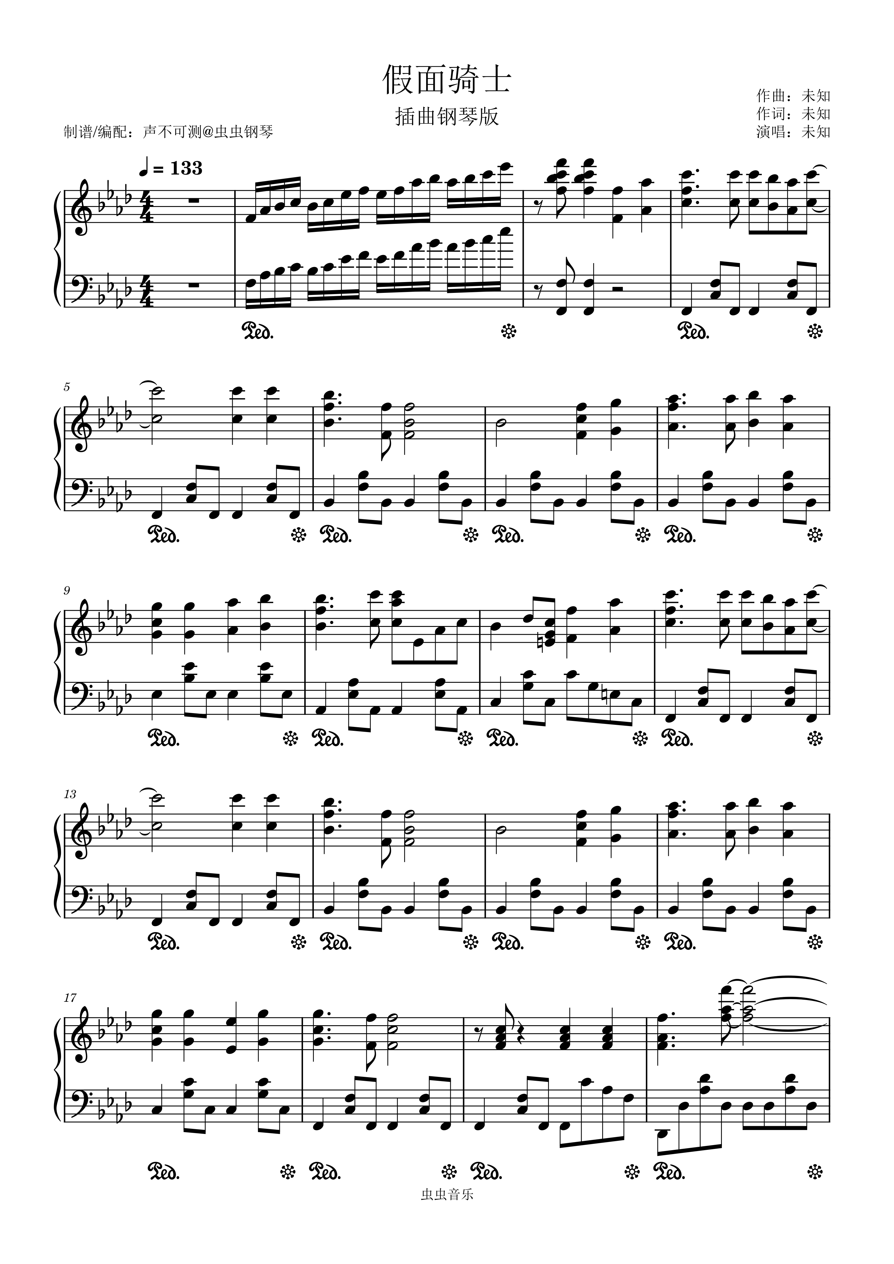 钢琴谱:《假面骑士》BGM - 声不可测
